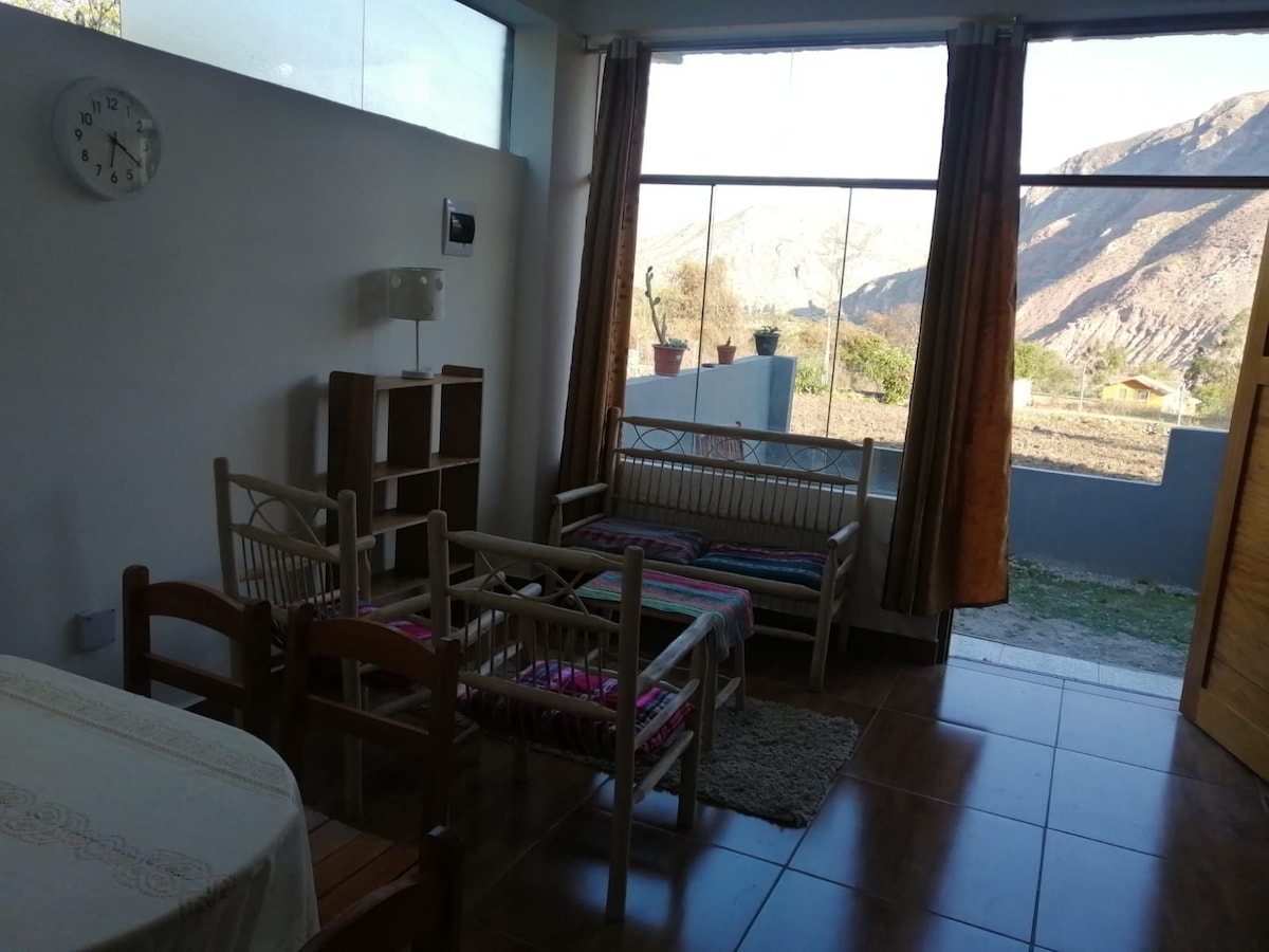 Relájate con toda la familia en este tranquilo lugar para quedarse. Ideal para parejas, viajes entre amigos. Nuestra casita cuenta con 01 habitaciones con baño privado y 02 habitaciones con en común, sala comedor y cocina equipada. Ofrecemos internet, cable directv, servico de agua y luz. Tambien contamos con un estacionamiento. Te envitamos a disfrutas de una hermosa vista a las montañas.
