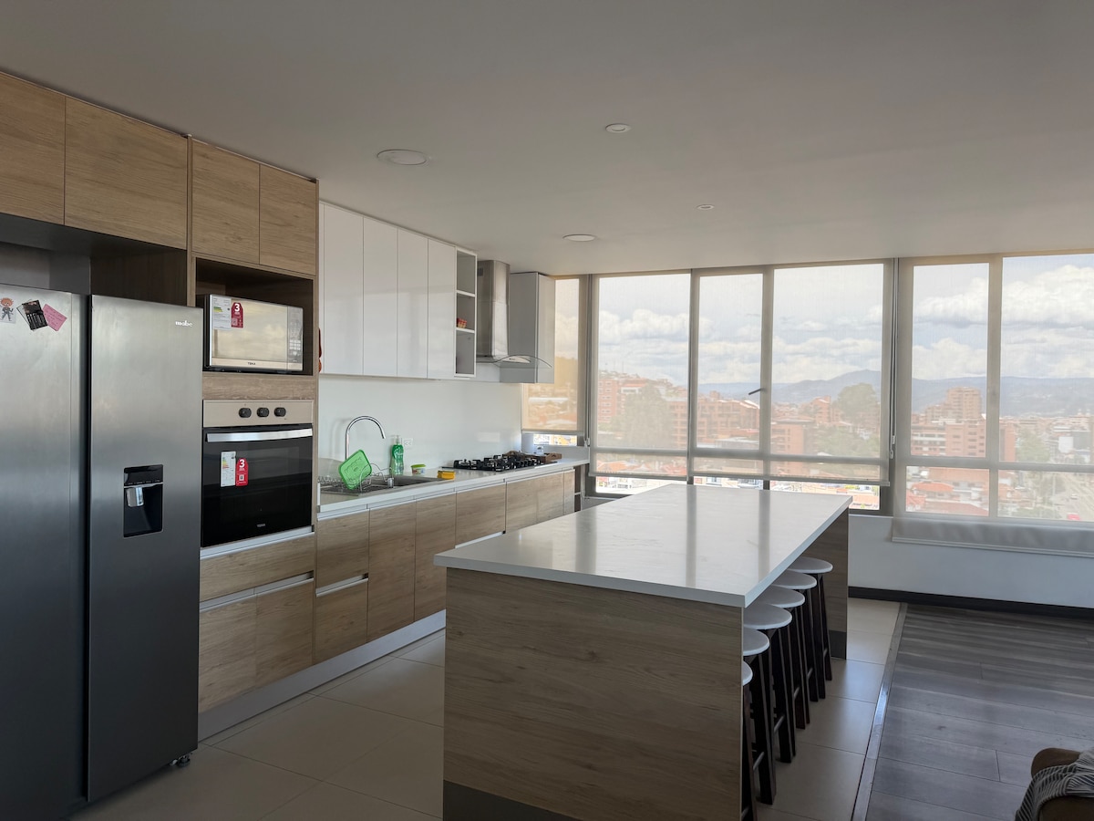 A spectacular brand new Suite located in the best neighborhood of Cuenca "El Vergel". The suite has a Queen size bedroom, 1 full luxury bathroom, spacious equipped kitchen and also a work area equipped with the best internet speed. The surroundings of the suite are incredible, river, parks, gastronomic area, bakery, stadium, city center, historic center, university, Clinics, College, Banks all within a radius of 500 meters.