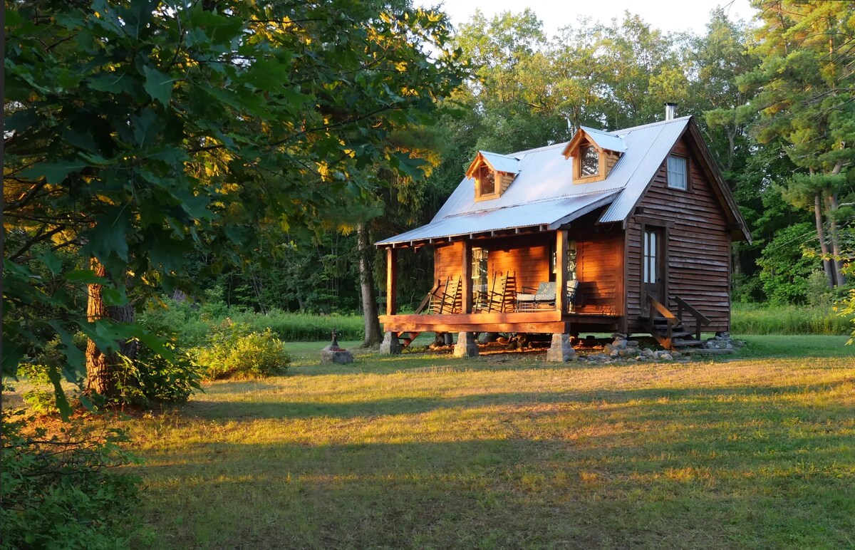 *** If snow is on the ground, you’ll need to walk 1/8 mile to cabin.*** Step out of the hustle and bustle- give yourself a weekend to just breathe. Drink coffee on the porch while the Great Blue Heron lands in the rising mist of the pond. Devour a novel while your phone sits on silence. We’d love to host you at Bright Sky Farm! The cabin does not have running water, and has a bucket toilet. Think of it as camping but drier! A solar panel powers a EcoFlow box for lights and charging.