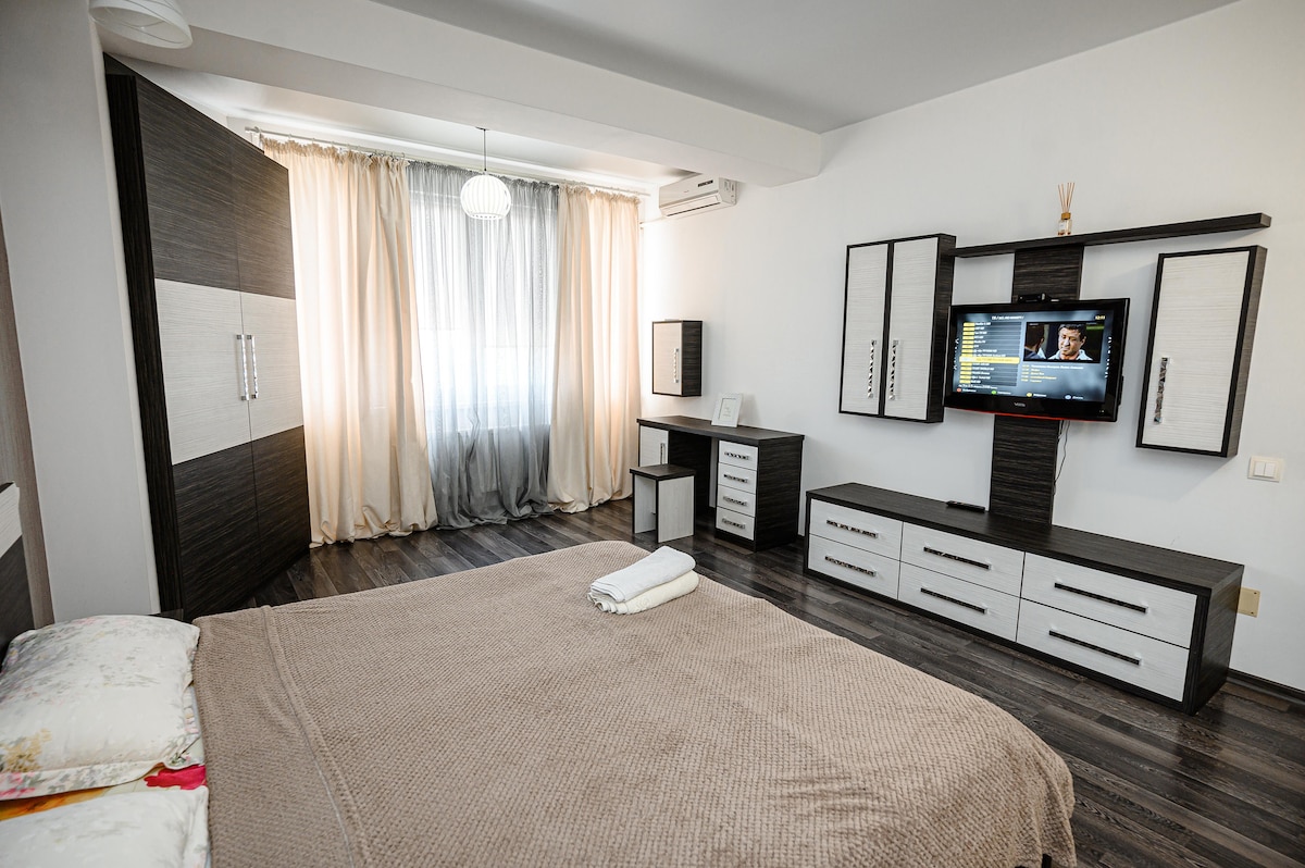 Orange Nest je moderno uređen apartman, stvoren za prijatan i udoban boravak u Kišinjevu. ✔ 2 odvojene spavaće sobe sa velikim krevetima i udobnim dušekima ✔ Podno grejanje u kuhinji, dnevnoj sobi i kupatilu ✔ Automatsko grejanje – uvek savršena temperatura ✔ Klima-uređaj (2 jedinice) ✔ Privatni podzemni parking – bezbedan i siguran za vaš automobil Arena Kišinjev je veoma blizu — idealna za goste koji posećuju koncerte ili događaje.