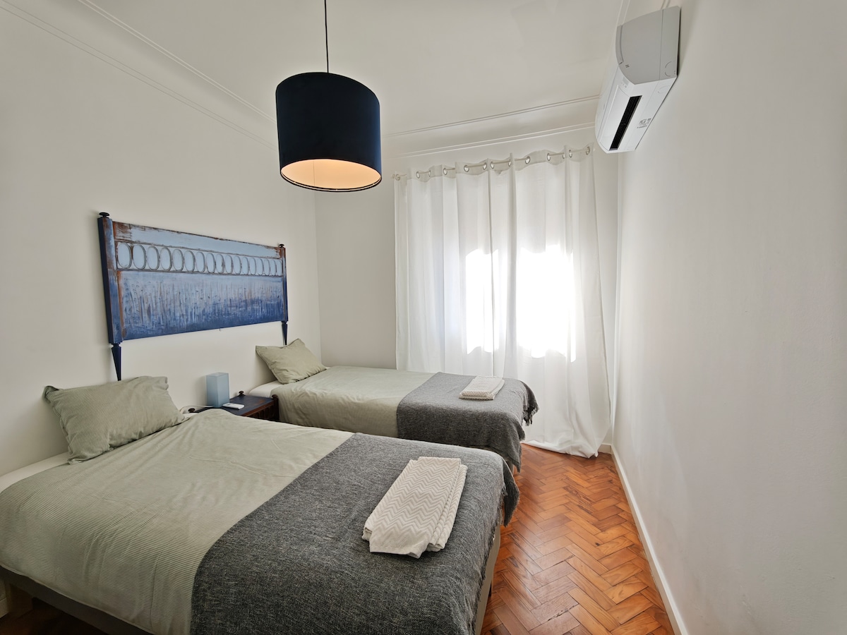Nevjerovatan i prostran (120 m2) stan se nalazi na 2. spratu (sa liftom) potpuno renovirane tradicionalne zgrade Lisabona i gleda na sunce tokom dana. Elegantno je uređen, potpuno namješten i opremljen svim mod-konima. Otvorite prozore, uživajte na balkonu, odmorite se na kauču, uživajte u pogledu, koristite internet, uživajte u piću ili čitajte knjigu, kuvajte i radite sve što vam se sviđa, a obično radite u svom domu, ali u fantastičnom gradu Lisabonu! Stan nudi 2 dvokrevetne spavaće sobe, obe sa kupatilom, prostranu dnevnu i trpezariju sa radnom sobom i kaučem koji se može pretvoriti u dodatni krevet; jednu WC šolju; kuhinju potpuno opremljenu mašinom za pranje veša, mašinom za sušenje veša, mikrotalasnom rernom, frižiderom, aparatom za kafu, mašinom za sudove; TV i besplatan Wi-Fi u celoj kući. Može da ugosti do 5 osoba i ima sve uređaje za duži i kraći boravak, uz mogućnost jednog kreveta za bebe (molimo vas da to zatražite). Čišćenje se vrši pre dolaska i uključena je u cenu. Kreveti će biti napravljeni sa čistom posteljinom, a mi ćemo obezbijediti jedan komplet peškira po gostu. Moći ćete da uživate u celom apartmanu isključivo tokom vašeg boravka. Uvek ću se truditi da brzo odgovorim na sva vaša pitanja ili komentare. Čim potvrdite rezervaciju, obratiću vam se da pripremim vaš dolazak i čekaću da vas dočekam u stanu. Prilikom prijave i tokom boravka, biću vam na raspolaganju u svakom trenutku kada vam zatrebaju saveti o najboljim restoranima koje treba posetiti ili bilo koje druge informacije koje biste želeli da znate o ovom divnom gradu. Stan je očišćen od strane profesionalnih čistača. Radujem se što ću vas ugostiti u Lisabonu! Otkrijte područje Avenidas NOVAS. Osećajte se kao lokalac kada istražujete supermarket, antikvarnice, moderne prodavnice, restorane i kafiće. Lutajte dalje, obližnjim metroom, samo 8 minuta do istorijskog centra. Metro (metro) je najbolji javni prevoz za obilazak grada. Naći ćete Sa name} o Sebastia name} o metro stanica odmah na kraju ulice (4 minuta hoda). Saⓘo Sebastia name} o je stanica čvorišta za crvenu liniju (direktna veza sa aerodromom) i plava linija (direktna veza sa istorijskim centrom, avenida da liberdade i železnička stanica Santa apolonia). U blizini se nalaze i tri autobuske linije (3 min hoda), na adresi Av. de Berna: 716, 726 i 756. Ukoliko želite da posetite područje Alcantara ili Rua da Junqueira (obala reke Tajo), linija 756 će vas odvesti tamo (smer istok-zapad). Ako putujete sa privatnim automobilom, ispred zgrade je natkriveno parkiralište sa maksimalnom dnevnom cenom od 12 evra.