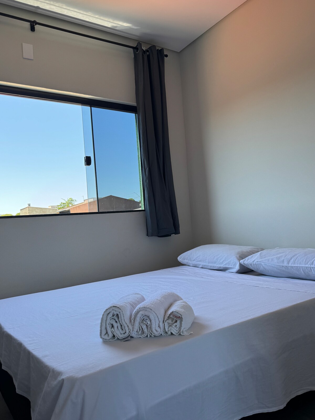 NOVI i MODERAN stan. Nalazi se u srcu GLEBE PALHANO, nedaleko od tržnog centra Aurora, supermarketa, akademije i apoteke. Gleba Palhano se smatra najboljim regionom Londrine. Okolina se sastoji od luksuznih nekretnina. Stan: Klima-uređaj u spavaćoj sobi, Smart TV u dnevnoj sobi, WI-FI, bračni krevet, kauč na razvlačenje, frižider, prečišćivač vode, ploča za kuvanje, električna rerna, sendvič, razni tiganji i komplet pribora za jelo. Posteljina i posteljina za kupanje su već uključeni u smještaj.