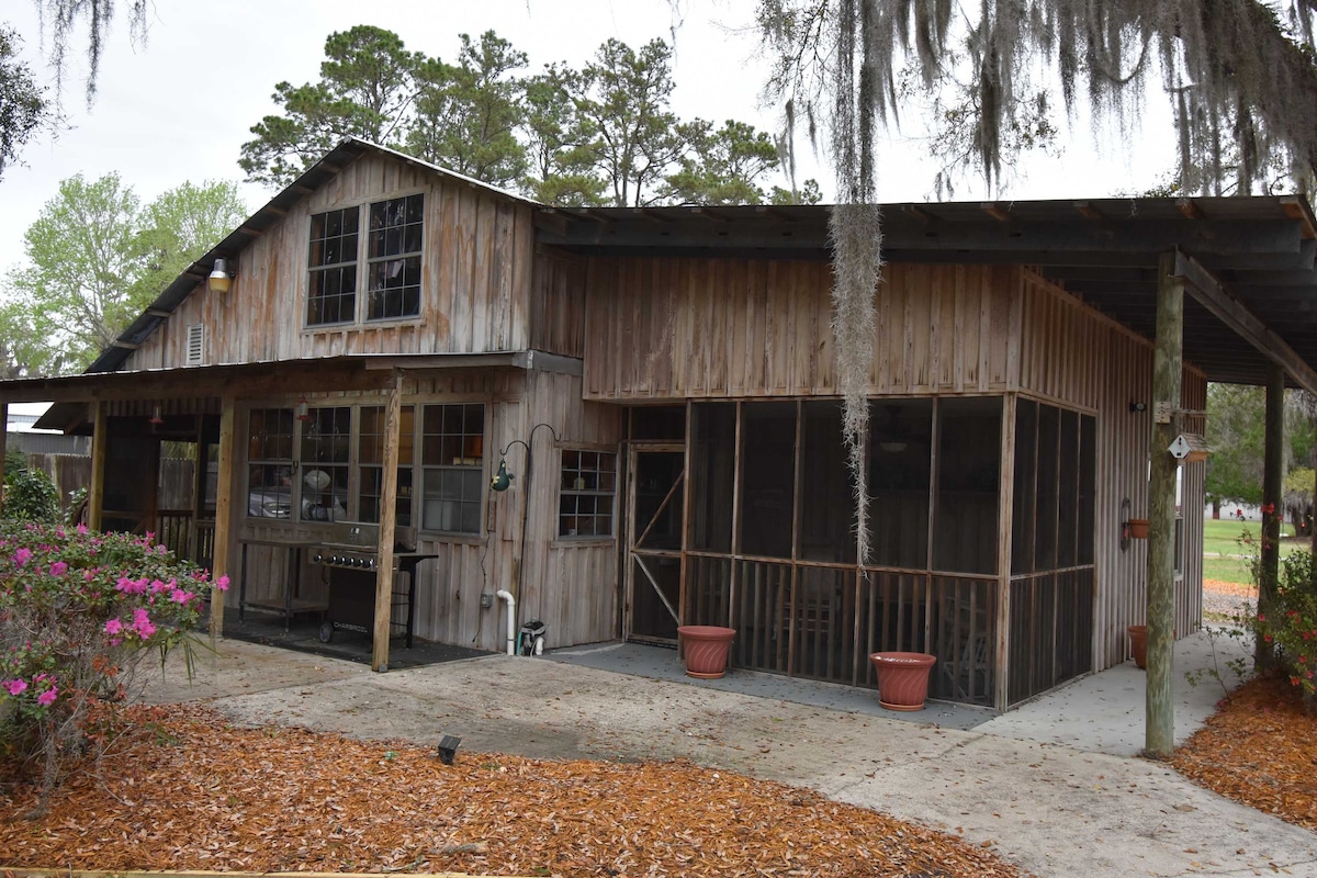 Želite da istražite Obalu Džordžije? Da li vam je potrebno mirno mesto da se isključite, opustite i napunite baterije? Ova rustikalna brvnara nudi luksuz i sadržaje i savršena je za romantični odmor ili vikend avanturu. Nalazi se na 9 slikovitih hektara sa drvećem i pticama koje se gnezde u njima, visokim liticama koje vijugaju do dugog šetališta koje vas vodi kroz kip šumu koja se završava na reci Satila. Na reci možete da se opustite, posmatrate prirodu ili pročitate knjigu. Mi smo brza vožnja do odličnog pecanja.