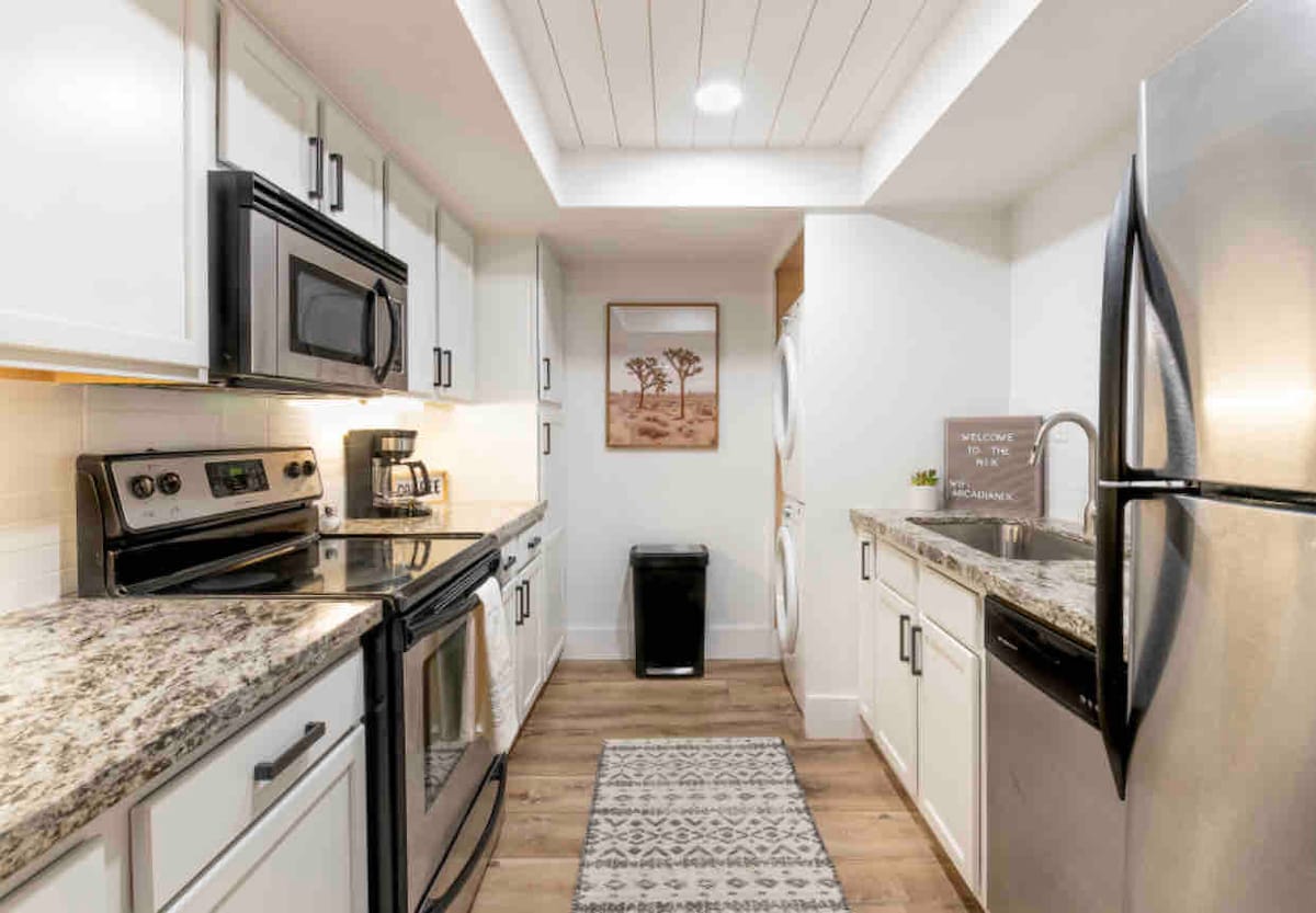 Posebnosti mog doma: - Pobegnite u ovo sunčano utočište sa zajedničkim bazenom i terasom pogodnom za kućne ljubimce za opuštanje - Idealno za duže boravke, uživajte u brzom Wi-Fi mreži i namenskom radnom prostoru - Prošetajte do vrhunskih kafića, jedinstvenih butika i bujnih parkova za urbane avanture - Jednostavan pristup parkingu i potpuno opremljena kuhinja poboljšavaju vaš boravak – Rezervišite datume odmah i doživite izuzetno iskustvo! *Naknada za čišćenje od 100 USD primenjuje se ako povedete krznenog prijatelja nakon rezervacije