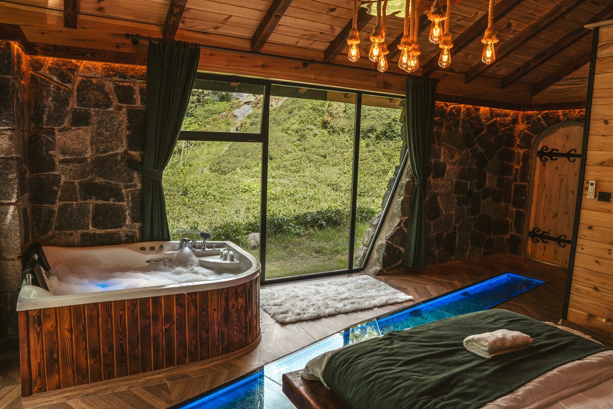 U renoviranom i živopisnom stanju, biće popusta za 2 ili više noćenja. Molim vas da mi pošaljete privatnu poruku. Kuća ima spoljni prostor sa hidromasažnom kadom. Naša izuzetno luksuzna kuća opremljena je „đakuzijem, klima-uređajem, šporetom sa kaminom i staklenim prozorima koji se otvaraju. Dizajniran je tako da vas niko ne može videti. To je restoran u kojem možete da probate naše prirodne proizvode u našoj porodičnoj kompaniji, a ako želite, možete da probate da kuvate lokalna jela sa mojom majkom u našoj kuhinji, a zatim da pratite lokalni život u našem polju čaja.