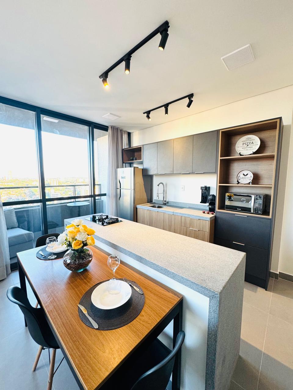 Studio de alto padrão muito bem equipado e decorado em prédio novo no bairro Cambuí. Com decoração encantadora, o studio possui um quarto com cama queen, espaço para home office, sofá-cama na sala (que acomoda 1 adulto ou 2 crianças), TV smart na sala para você conectar no seu streaming favorito, sacada com poltronas para relaxar, banheiro e cozinha super equipada com todos os ambientes integrados.