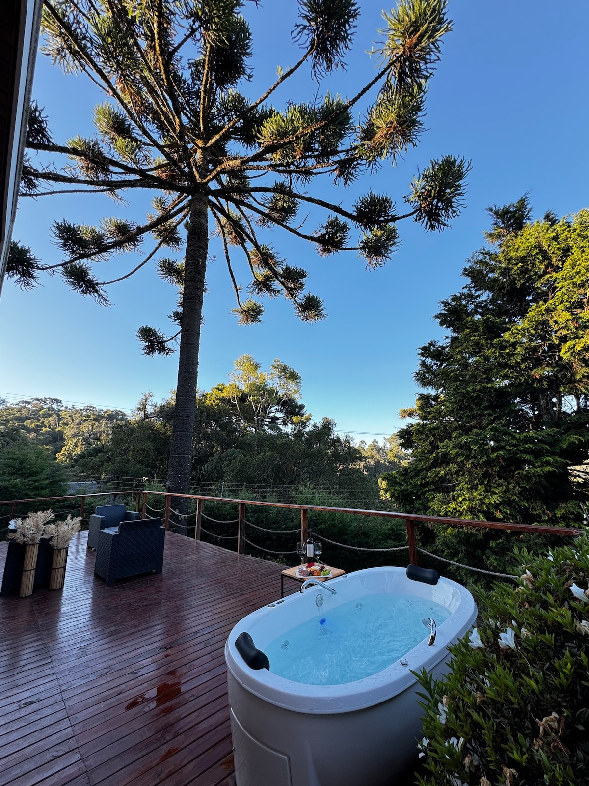 Nova kuća s panoramskim pogledom na Parque das Araucárias, na nadmorskoj visini od 1700 metara. To je mjesto za one koji traže kontakt s prirodom. Odavde ćete posmatrati prekrasan izlazak sunca, kao i udahnuti svjež vazduh i čuti zvuk vode koja dolazi iz vodopada u blizini kuće. U hladnim danima uživaćete u mrazu i magli, bez napuštanja doma. To je pravi užitak! Nalazi se samo 10 minuta od Kapivarija, 300 m kopnene ulice. Prihvatamo 1 kućnog ljubimca uz dodatnu naknadu.