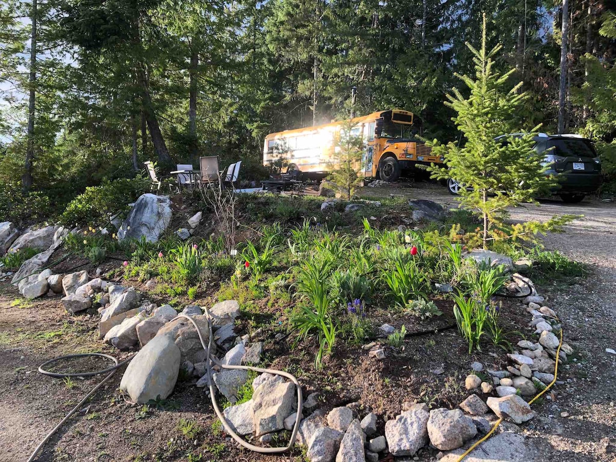 Ovo je školski autobus iz 1969. s ljubavlju pretvoren u malu gostinjsku kuću u hirovitom vrtnom prostoru. Nalazimo se u ruralnom stambenom području blizu Sooke BC, odmah pored Galloping Goose Staze. (Km37) Okružen zadivljujućim plažama, netaknutim šumama i planinarenjima na obali, osvježavajućim jezerima i rijekama, divljinom i prirodnim ljepotama. 30 minuta vožnje od Viktorije ili približno 3 sata vožnje biciklom ako se osećate avanturistički.