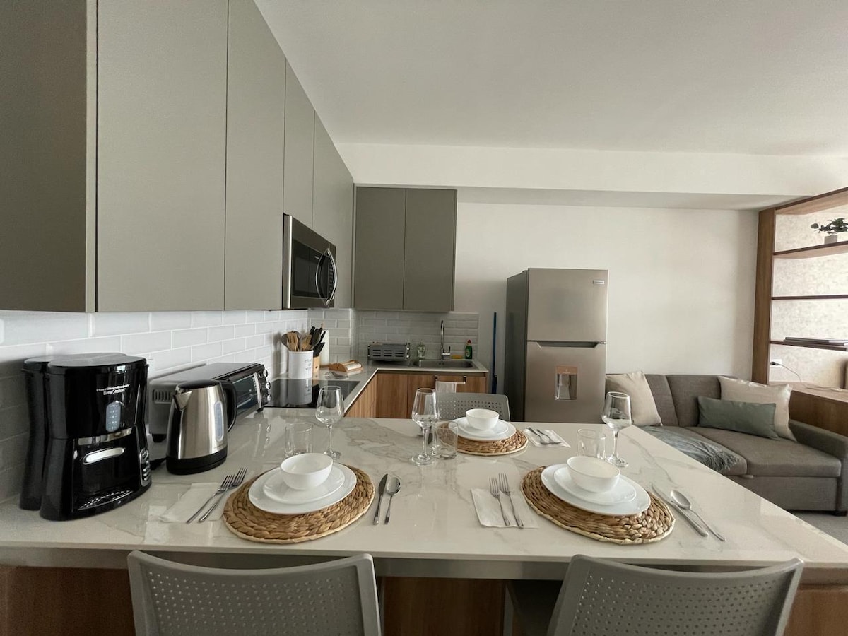 ★NEMA NAKNADE ZA USLUGE AIRBNB-A!!★ Ekskluzivna pogodnost za GOSTE KARAVANE Osjetite doživljaj boravka u potpuno novom stanu u Guateamali pored KARAVANE elegantnog i elegantnog dizajna, u kombinaciji s bijelim i sivim zidovima koji spajaju spokoj i spokoj. Imaćete priliku da odsjednete u blizini tržnih centara, restorana i hotelskog područja za manje od 10 minuta hoda. Stan Guatebuena ima zajedničke sadržaje kao što su teretana i zajednički radni prostor.