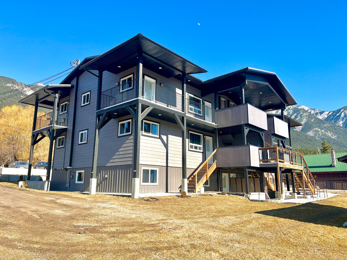 This condo has everything you need for a good time in the Columbia Valley! Spacious kitchen and living room, 2 full bathrooms, patio with BBQ, 2 bedrooms with comfy queen beds and another spot on the couch for a 5th person. You will enjoy the modern amenities in our clean & cozy space. Only 1 min by car to the village of Radium, 5 min to the famous Radium Hot Springs pools and 15 min to Invermere. Panorama Mountain Village is a short 30 min drive away. Only 1.5 h to Banff and Lake Louise!