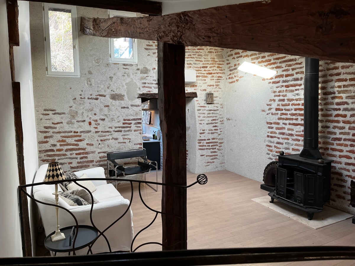 Ovo šarmantno potkrovlje od 100 m2 nalazi se u starom ambaru iz 18. vijeka u selu u blizini vinograda Kahors. Kuća je privatizovana (ni na koji način nećete biti sa drugim ljudima). Imate stalni pristup sauni i đakuziju u potkrovlju. Imate potpuno opremljenu kuhinju, međuspratnu spavaću sobu, dnevni boravak i privatnu natkrivenu terasu. Zajednički spoljni prostori i bazen. (Dajemo vam prioritet.