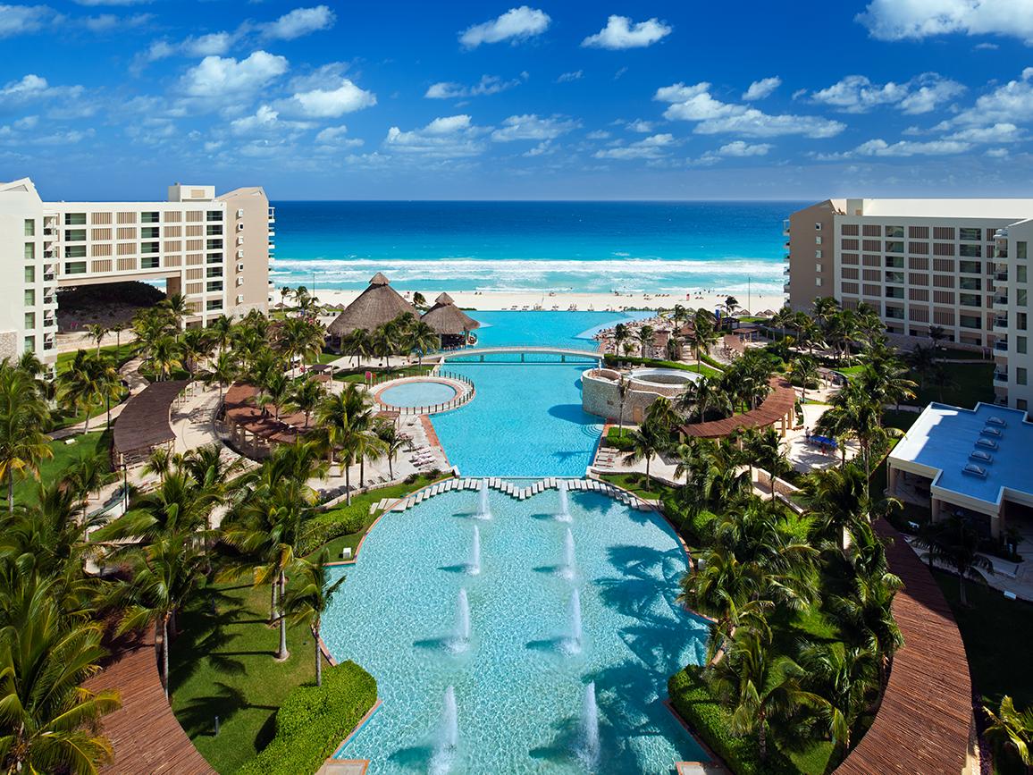 The Westin Lagunamar Ocean Resort Villas & Spa combines modern luxury with a spectacular beachfront setting in the heart of Cancun’s Hotel Zone. Resort amenities include an expansive infinity-edge pool overlooking the Caribbean Sea, whirlpool spas, a children’s pool, fitness studio, tennis courts, and a full-service spa. Guests can also enjoy international dining at on-site restaurants, poolside bars, and easy beach access for sunbathing or water sports.