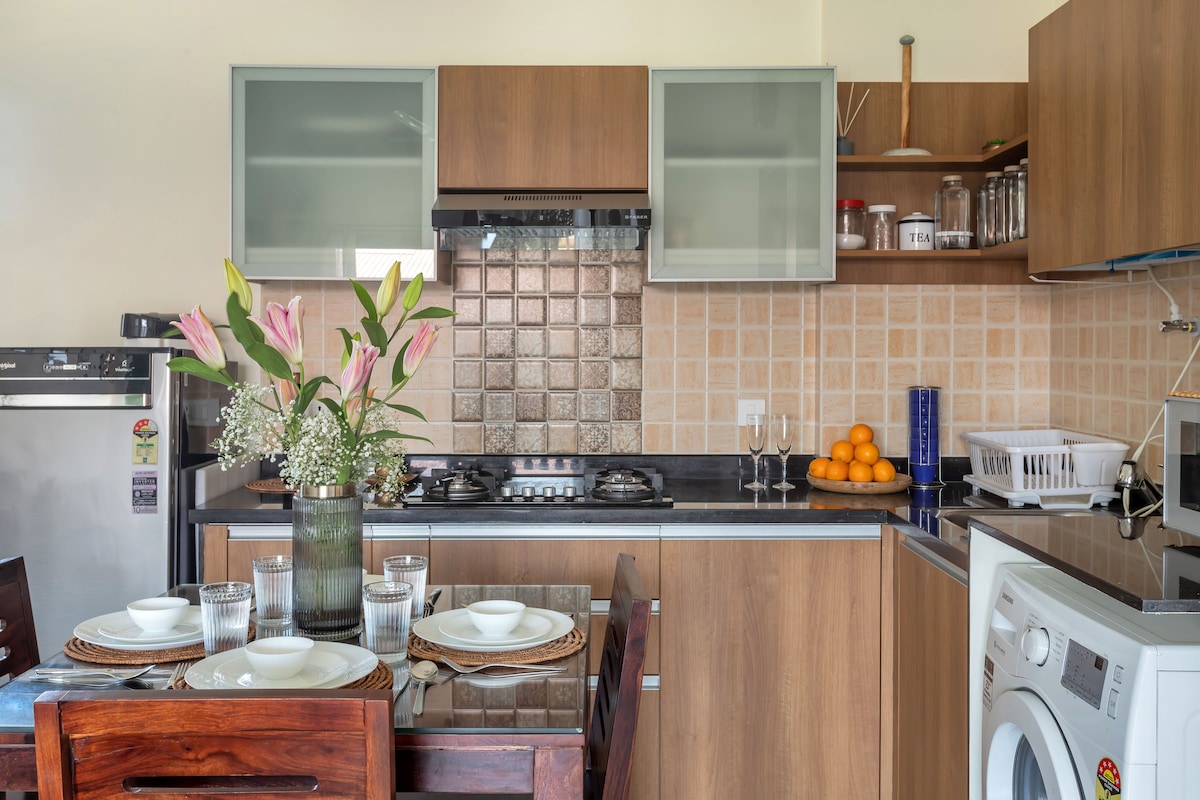 Welcome to Florence by CasaFlip! Luxury 2BHK Apartment features a beautifully designed living room, kitchen, balcony, and 2 bathrooms, all located in the heart of Goa. Situated in Candolim, just a 5-minute drive from the beach, the property offers top-notch amenities, including a spacious Roof Top pool and a gym with views of lush greenery. The home is crafted with love, using the finest materials and premium furniture to ensure a grand, luxurious, and comfortable stay.