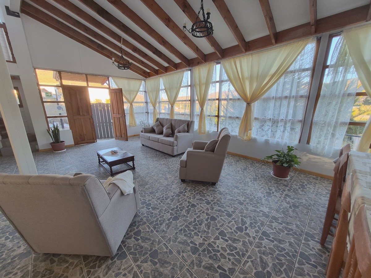 Prostrana kuća s pogledom na more i pješke do predivnih plaža Kapacitet za 14 osoba, 2 dvokrevetne sobe sa bračnim krevetom (1 u apartmanu) i 2 sobe sa brvnarama 3 kupatila Kućica sa mašinom za pranje veša Prostrana terasa sa roštiljem i unutrašnjim dvorištem sa šporetom Nalazi se u sektoru B poljoprivredne zajednice Huentelauquén Fudbalski teren Pergola sa šporetom i stolovima. Važno: Kuća radi od solarne energije Zakup uključuje opterećenje 1 jezerca (4.000 lts)