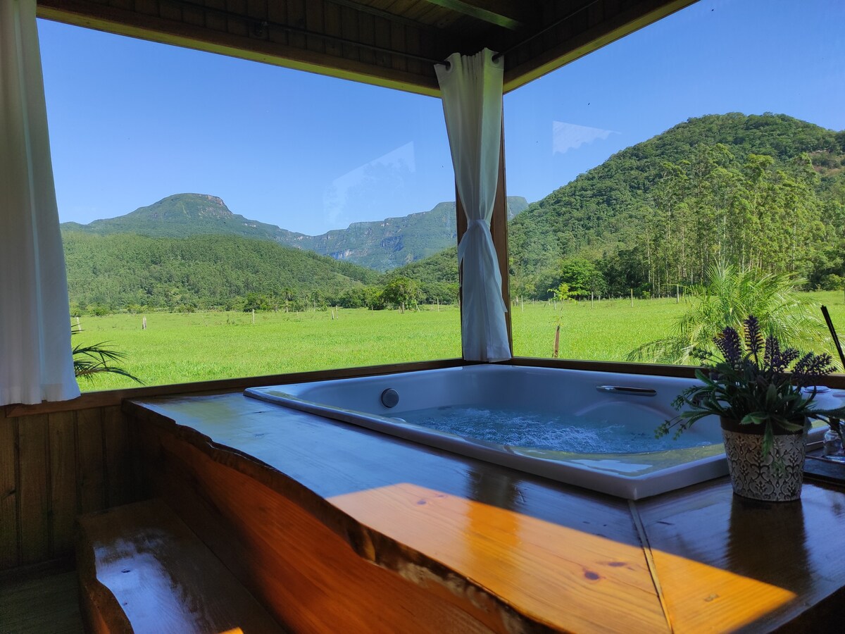 Opustite se u ovom jedinstvenom i mirnom smještaju. Najbolji pogled na kanjone Malakara u okolini, najvišu privatnu kolibu u blizini kanjona, komšije Kuće kanjona. Uzmite kadu tokom dana i nikada nećete zaboraviti na trenutak. Jedna od jedinih brvnara sa hidromasažnom kadom sa mineralnom vodom (bušotina sa 120 metara) i najopremljenijim prostorom. Nalazi se u ruralnom području 6 km od centra grada Praia Grande/SC, sa potpuno asfaltiranim pristupom (bilo koji tip vozila/motocikla).