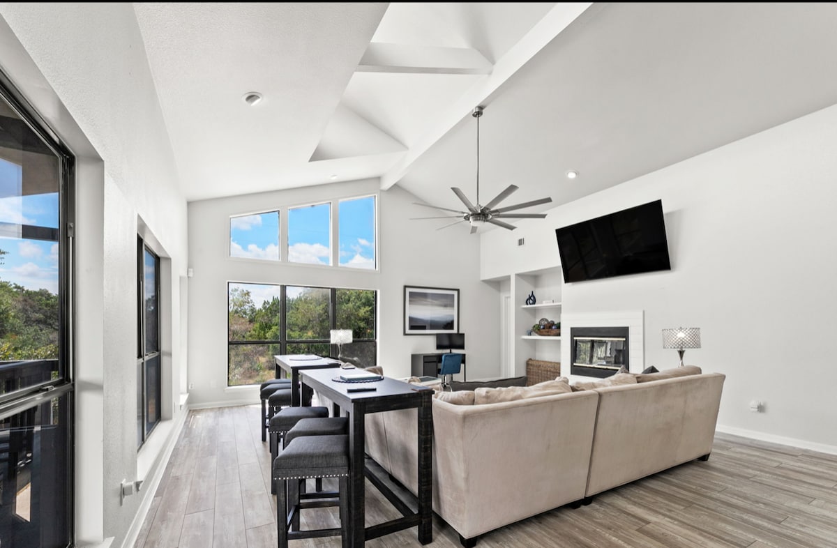 Dobro došli u The Overlook Tower! Ova kuća sa 2 spavaće sobe i 1 kupatilom savršena je za parove, male porodice i ljubitelje jezera koji traže miran odmor. Sadržaji uključuju hidromasažnu kadu za 5 osoba, veliko unutrašnje dvorište sa ležaljkama/ležaljkama, panoramski pogled na Teksas Hill Country, RV priključak/Tesla punjač, 2 pametna televizora, 2 kauča, trpezarijski sto i potpuno opremljenu kuhinju. Svaka soba je opremljena da uživate u putovanju sa udobnošću! Uživajte U boravku!