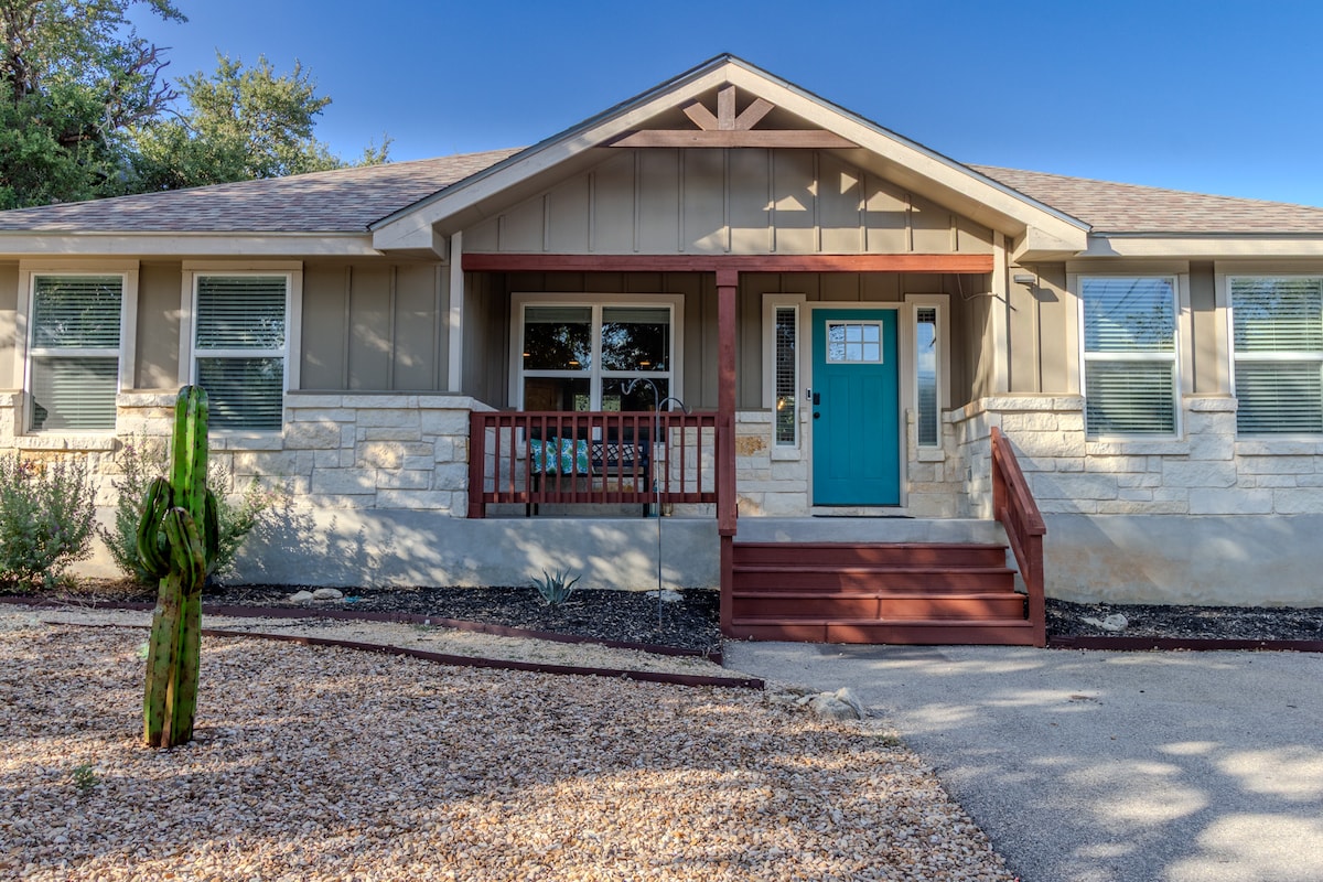 Uživajte u prelepoj brdskoj zemlji Teksasa u našoj kući na jezeru Kenjon. ☀️ Pristup jezeru! Samo pola milje niz put, dosta parkinga za prikolicu/brod! Sa električnim priključkom za kamp prikolicu. Savršeno se nalazi da pluta rekom ili da odvezete brod na pecanje🎣. 🚤 7 minuta do reke Gvadalupe, uhvatite koncert 🎶 u amfiteatru Vajt vode (udaljenom 6 minuta), provedite dan u istorijskom Grueneu ili upijte sunce na jezeru. Sve to☀️ možete da uradite u Hidden Havenu. 7 minuta od rezervata u rezervatu ako ste u gradu na venčanju.