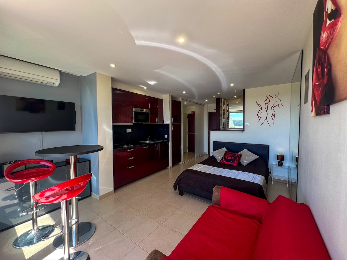 KOMPLETNO RENOVIRANJE 23 Pogled na more i plažu...Sa drvene terase možete da doručkujete u zoru i okrenete se prema moru, da odsednete na kauču ili da uživate u zalasku sunca. Smješten na 3. spratu (sa liftom) rezidencije Héliopolis, ovaj studio je potpuno opremljen (klima-uređaj, krevet 160x200, dovoljno prostora za odlaganje, kupatilo, odvojeni WC, čajna kuhinja). Obezbeđena je posteljina i peškiri, kao i Wi-Fi i privatno parking mesto.