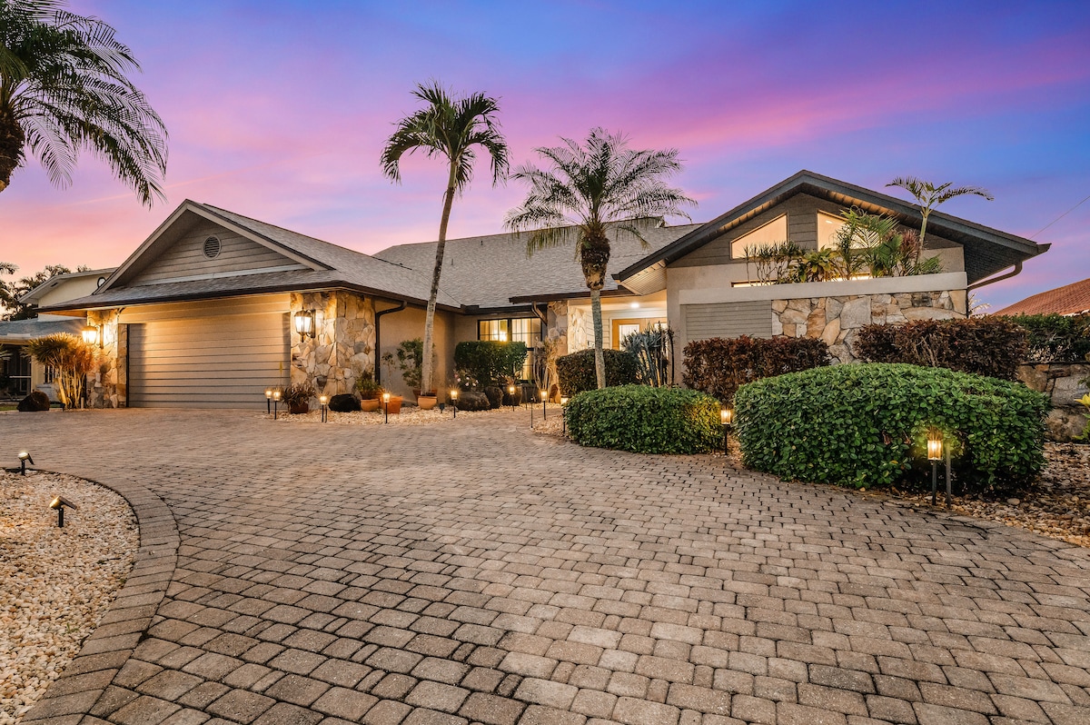 This charming lakeside home with a heated pool, a master suite with a king sized bed, private bathroom private exit to the lanai. A queen bedroom, a twin bedroom, a fully equipped kitchen. Breathtaking views of sunrise and sunset, a short walk to Sunsplash. The Courts a 32 court pickleball complex bowling alley, miniature golf, laser tag. Saratoga Park short drive to beaches, golf courses spring training facilities. centrally located property is in Cape Coral, Fort Myers, and Pine Islands.