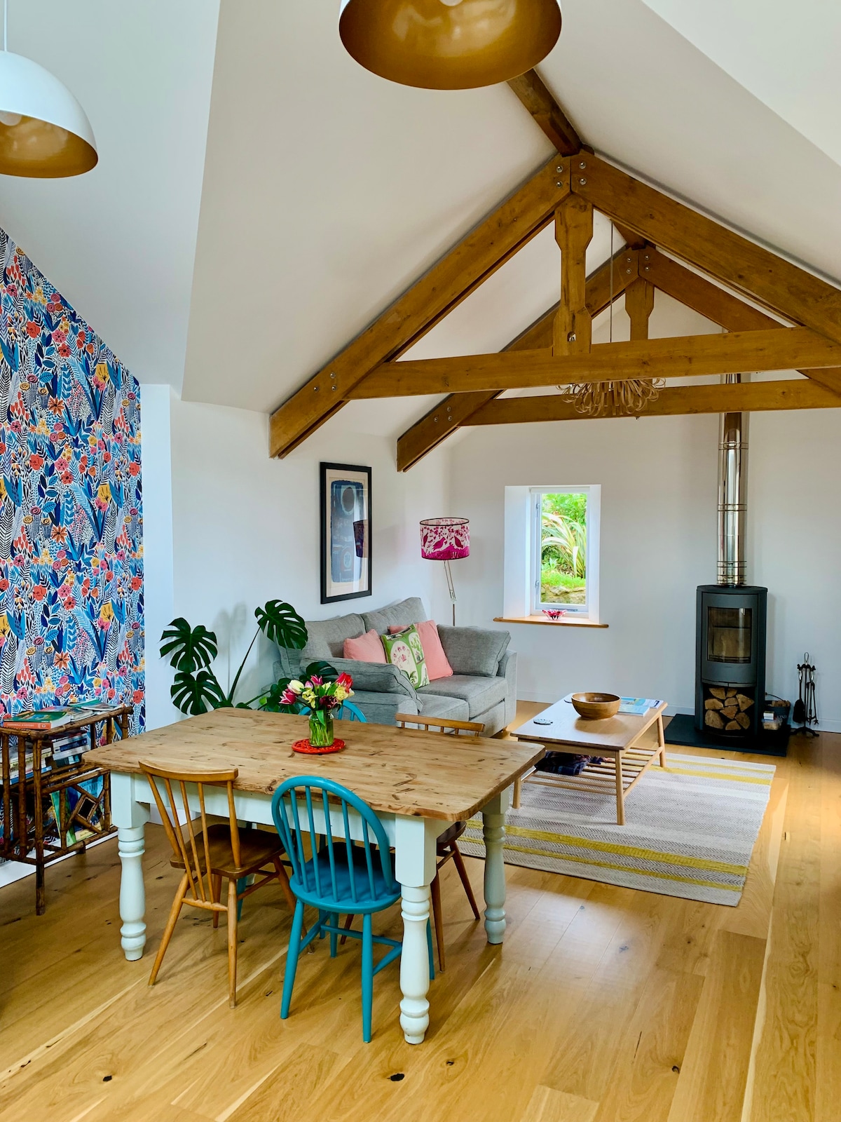 This old miners cottage has been colourfully transformed by the artist owner. Traditional granite walls keep the rooms cool in summer and on chilly evenings you can cosy up around the log burner. There is a good size garden with mature trees, a BBQ and outdoor dining area. It's the perfect base for exploring the mines of Botallack, where Poldark was filmed and is also close to many local beaches including Sennen Cove and Porthcurno. The house is not suitable for people with mobility issues.