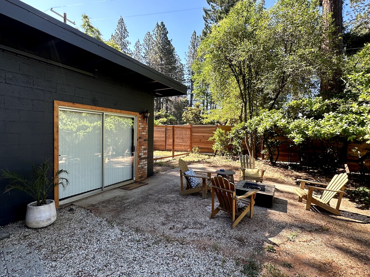Modern 1BD/1BTH open concept home in pine trees on Banner Mountain. Walking distance to local trails, 10 minutes to downtown Nevada City/Grass Valley. Sleeps 4 comfortably (queen sofa bed in living room) queen air mattress if six occupants are desired. Any more guests over 4 there is a charge of $10/person per night. Kitchen has everything to cook with + outdoor BBQ. Games and puzzles. The garage has a ping pong, washer/dryer. Generator during power outage.