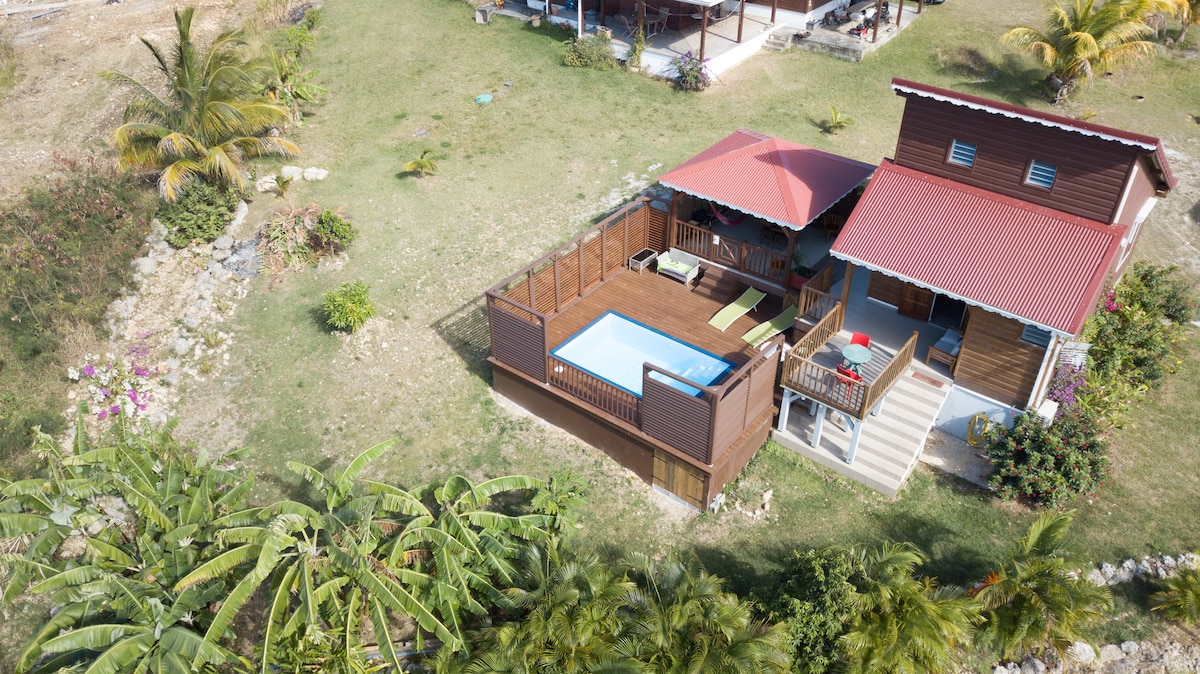 Kazalija se nalazi na vrhu Kejpstera i nudi panoramski pogled na lagunu, 2 km od sela (nezaobilazno vozilo) i prelepu plažu Feuilre. Okružen velikom tropskom baštom, moj smeštaj je idealan za par koji voli mir i prirodu . Trgovinski vetar zamenjuje klima-uređaj. Prvo noćenje obroka na zahtev. Prvi doručak se nudi za boravke od najmanje jedne sedmice . Minimalno tri noćenja