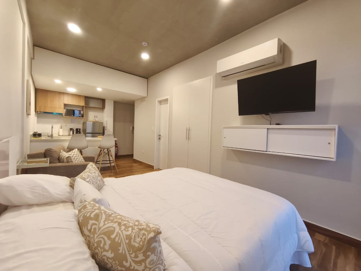 Neka sve bude jednostavno u ovom mirnom smještaju koji se nalazi u centru grada. Predivan udoban kondominijum spreman za uživanje u boravku u Asuncionu na nekoliko dana ili nekoliko mjeseci. Sve što vam je potrebno je uključeno. Kratka šetnja do Shopping Villa Morra/Mariscal, supermarketa i mnogih restorana. Korišćenje bazena na krovu, roštilja i teretane. Veliki balkon s odličnim pogledom. Wi-Fi, posteljina, kuhinja i sve ostalo kako biste se osjećali kao kod kuće. Namenski radni prostor: radni sto, stolica, Wi-Fi i utičnice.