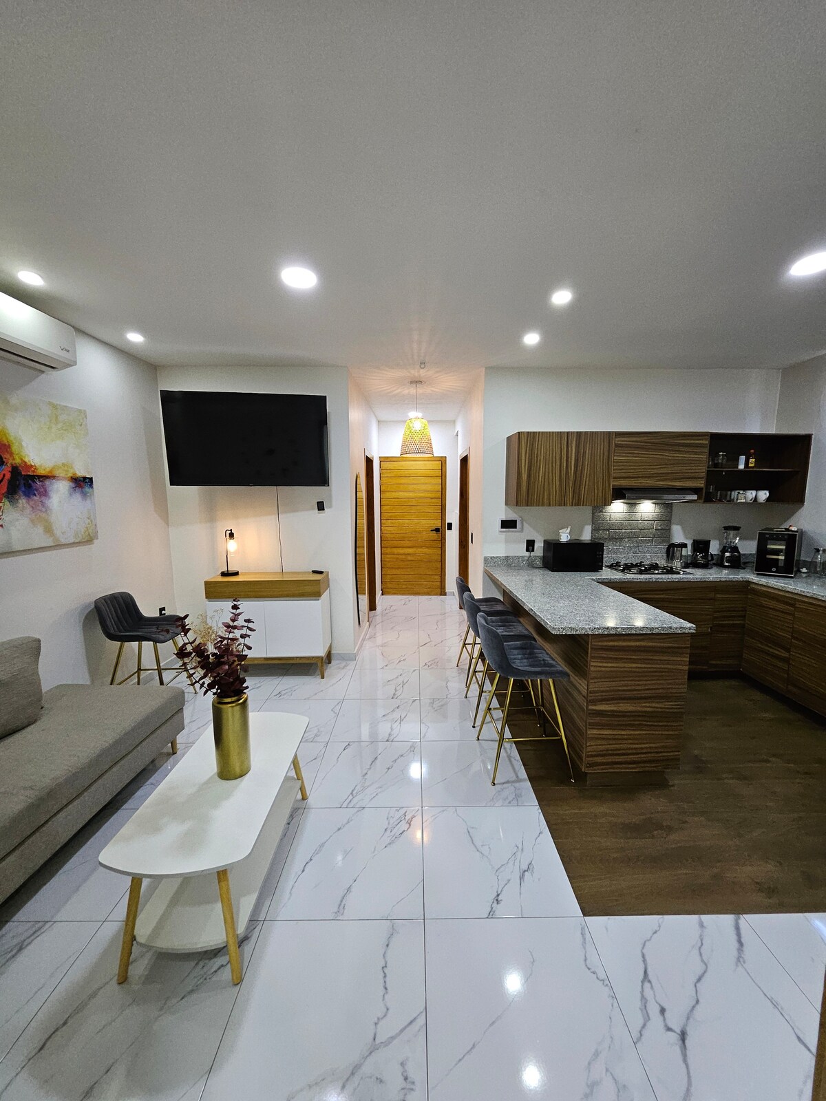 (FACTURO el TOTAL Encantador departamento te ofrece la combinación perfecta de tranquilidad, diversión y urbanidad, ubicado en una zona muy privilegiada a metros de las principales avenidas, lo cual te da acceso a los mejores restaurantes de la cuidad , Walmart, casino, bares, central camionera, núcleo textil Estamos ubicados sobre el parque lineal, por lo que podrás realizar caminatas 🌳matutinas de 1.4km o un lindo picnic con tu pareja con la canasta 🧺 especial que te prestamos🍷 Relax 😎