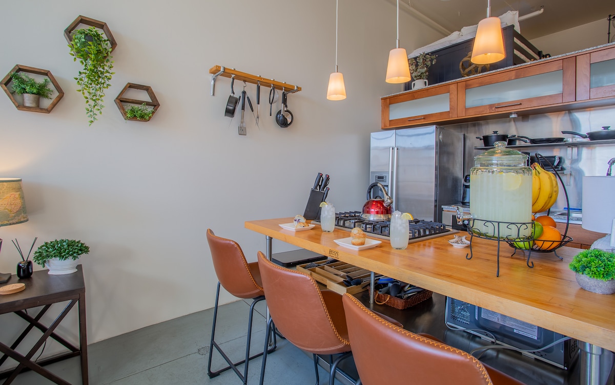 Da li je to umetnička galerija ili životni prostor? Zapravo, i jedno i drugo! Opustite se u ovom luksuznom apartmanu sa 2 spavaće sobe i 2 kupatila, sa velikim bračnim krevetom i francuskim ležajem, u srcu centra grada, na pešačkoj udaljenosti od Delta centra, Salt Palace-a, pozorišta Eccles, City Creek-a, Gateway-a i najboljih restorana u Solt Lejk Sitiju. Pansionska kuća nudi: ✅ Luksuzna udobnost ✅ Potpuno opremljena kuhinja ✅ Teretana ✅ Privatni natkriveni parking ✅ Vrhunski Frame Art televizori ✅ Namjenski radni prostor Rezervišite boravak u ovom dizajnerskom smeštaju „AirbnG“ za boravak ispunjen umetnošću u srcu Solt Lejk Sitija