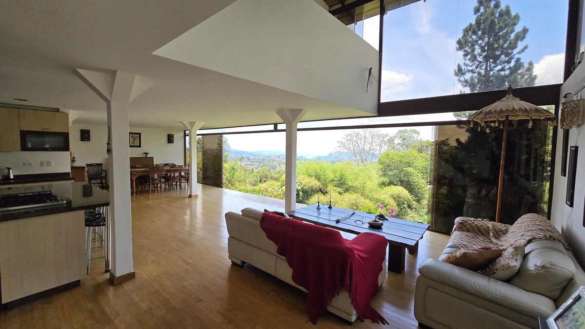 Relájate en este espacio tranquilo y elegante, lejos de la ciudad, ideal para vacaciones y retiros. Con amplios espacios verdes y bella vista. Equipado, con estacionamiento, wi fi y todos los servicios para tu comodidad.