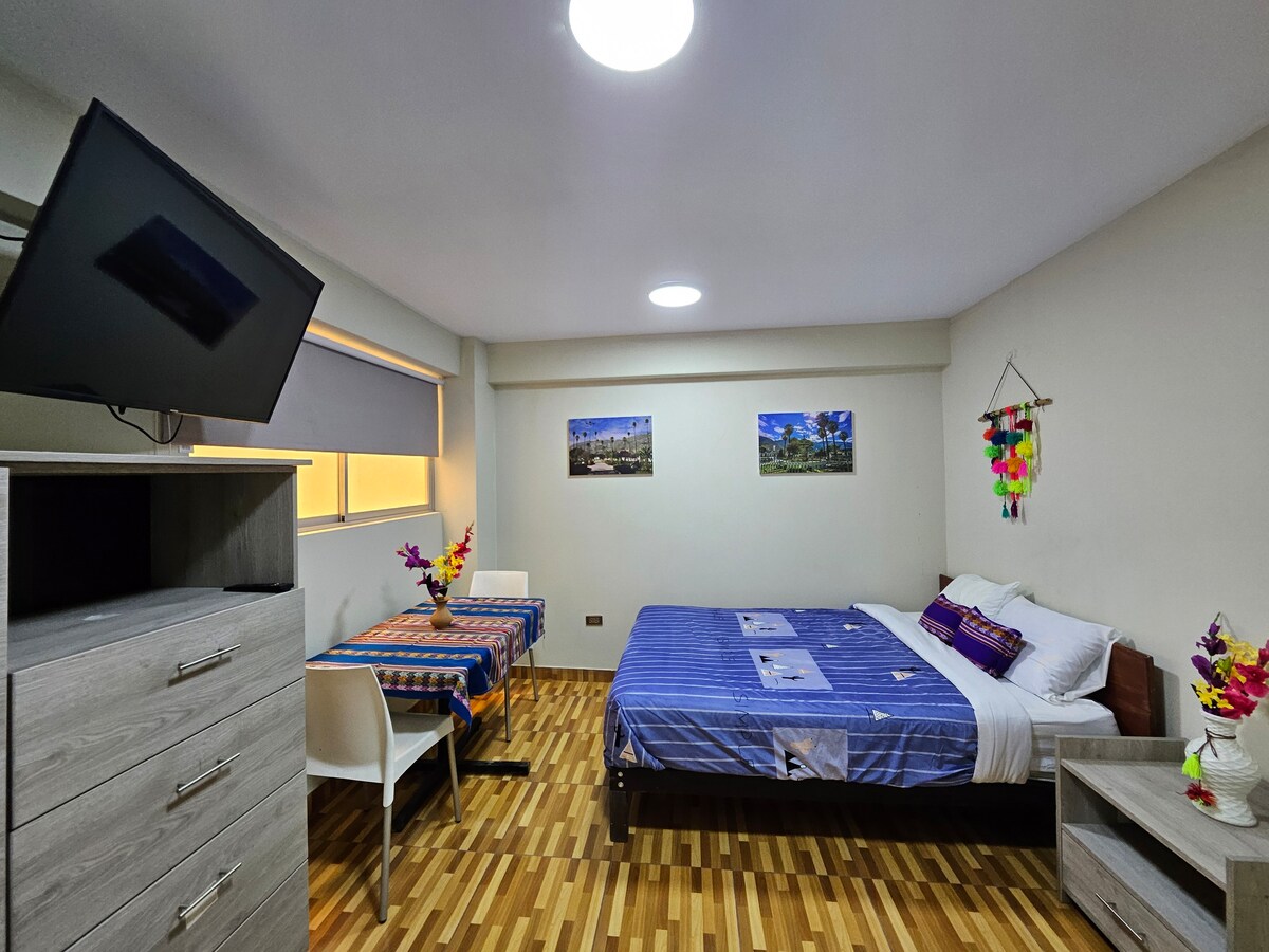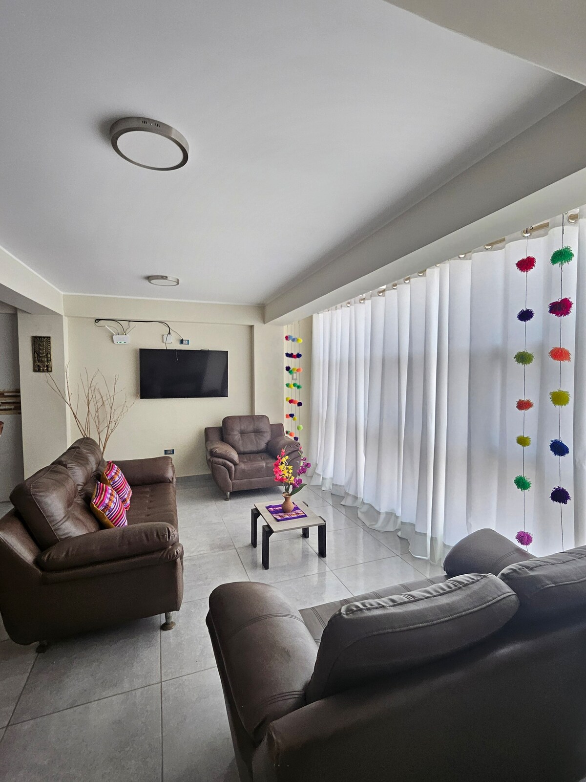 Encantador departamento céntrico en Caraz, a pocos pasos de la Plaza de Armas, perfecto para viajeros solos que quieren moverse caminando y sentirse como en casa. El barrio es tranquilo, con mercados, restaurantes y transporte hacia los atractivos del Callejón de Huaylas muy cerca. El espacio es práctico y acogedor, ideal para descansar después de explorar la sierra ancashina. Cuenta con cocina equipada, wifi y ambientes cómodos para relajarte, trabajar o planear tus rutas del día siguiente.