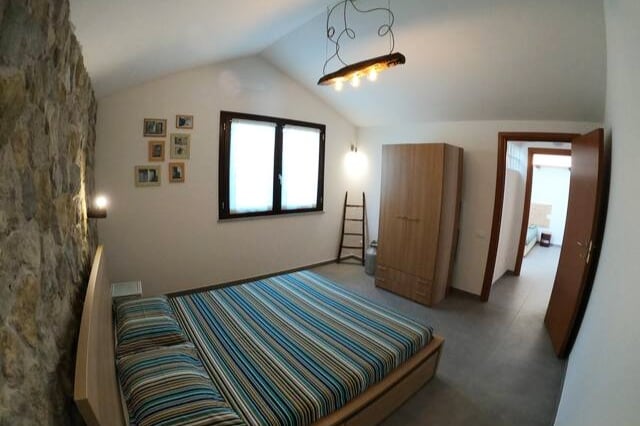 Se desiderate una vacanza all’insegna del relax e del contatto con la natura, questa casa fa per voi. La casa dispone di due camere matrimoniali, una camera singola, due bagni, una cucina attrezzata e un salotto. All’esterno potrete godervi un grande terrazzo, un barbecue e la possibilità di mangiare all’aperto con un vista splendida sulla pineta circostante. La casa si trova a circa 4 km dal centro abitato.