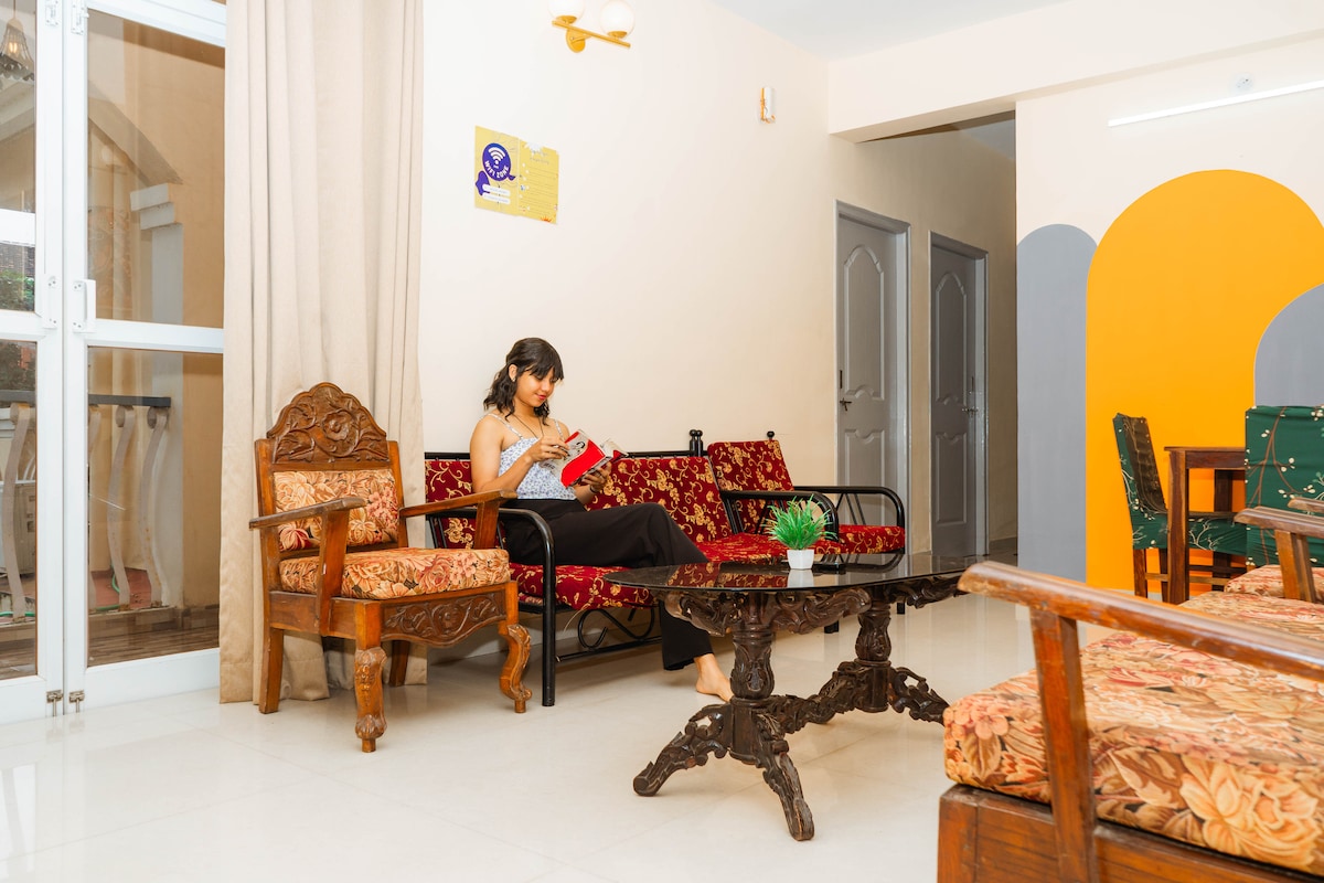 Opustite se sa prijateljima ili porodicom u mirnom selu Varka,Južna Goa koja se nalazi u jednom od skrivenih i najpreciznijih plaža Zalor,sa belim peskom,čistim obalama i zelenim poljima Buš. Naš stan je prostran sa 3 balkona koji prikazuju odličan pogled,dobro opremljen svim uređajima i potpuno funkcionalnom kuhinjom. Možete da podstaknete obrok u našoj kuhinji, da upijete pogled sa našeg balkona,prošetate do plaže ili jednostavno slušate zvuk talasa dok WFH koristi naš brzi Wi-Fi.