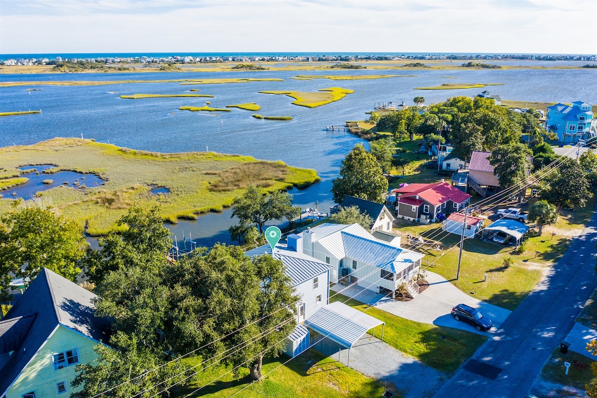 Amazingly spacious with breathtaking views of the canal, Sweet Caroline has it all!! Screened-in porch for your morning coffee, private boat dock, and best of all a five minute walk to warm sandy beaches, a park/playground, bars, an arcade, Hot Mess Studio, and the Minute Man Food Mart! Whether you’re a couple looking for a quiet getaway, a family looking to make memories, or a fisherman seeking a comfortable bed, it's the ultimate spot. Surf City is a perfect vacation destination!