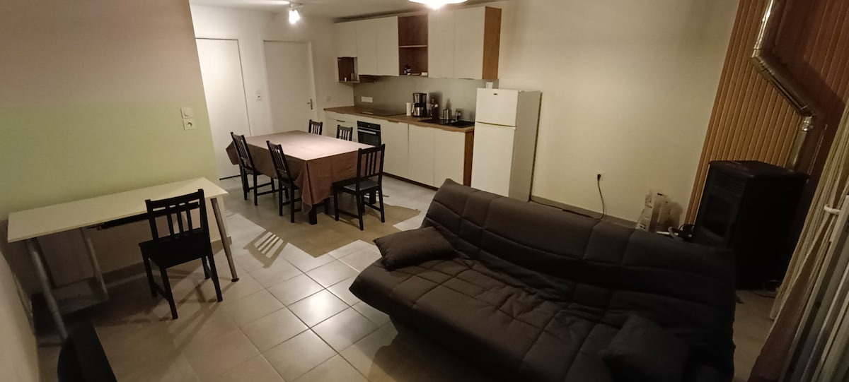 Bienvenue dans ce superbe studio totalement indépendante. Vous y serez tranquille et confortablement installé pour vous ressourcer. D' une surface de 24 m² et très bien aménagé avec .... - Cuisine aménagée, avec vaisselle, four micro-onde grill, réfrigérateur, cafetière, bouilloire. - Salle d'eau avec douche, lavabo et WC - Espace salon/nuit - Espace repas Classé 3 ☆ - ETOILES DE FRANCE