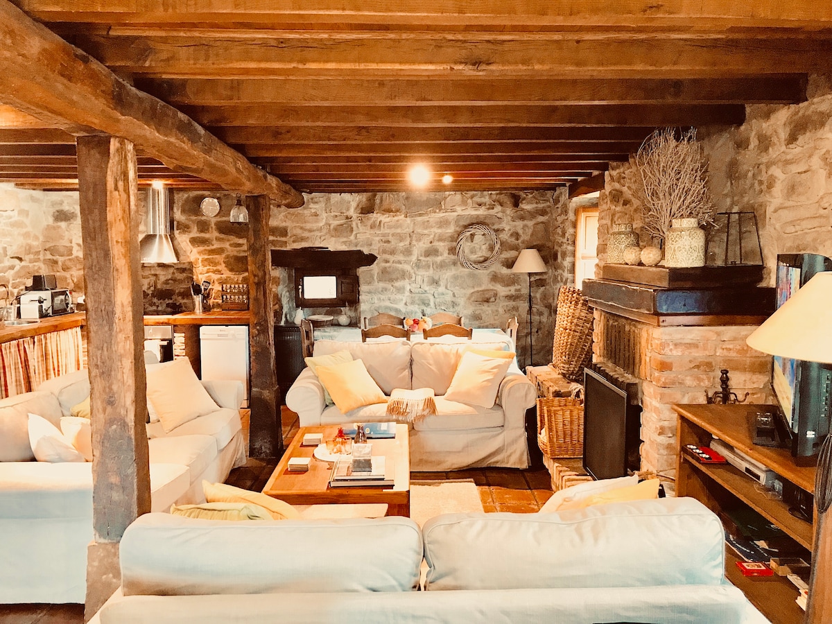 Rural Cottage made of Stone and slate roof, original from the area with unparalleled location and views, it has a private oak and chestnut´s forest with its own picnic table and an extensive farm to walk in an incomparable environment, 2 floors, 3 rooms one of them with sofa and tv, Barbecue - Outdoor fireplace, Water well, covered porch, Terrace - balcony, Viewpoint - stone terrace suspended on the hillside with stunning views of the valley and the mountains, as well as the whole house.