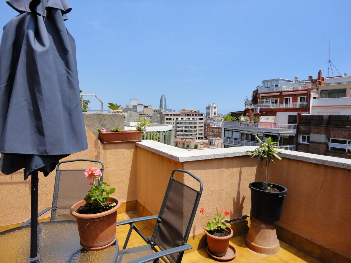 Stan sa predivnom terasom , dobro opremljen i veoma konfortable.situated u L'Eixample Dret, samo 5 minuta hoda od La Sagrada Família i 10 minuta hoda od Passeig de Gràcia, sa nekim od najpoznatijih dela Gaudí (Casa Batlló, la Pedrera, ...). Okružen svim vrstama usluga (supermarket, pekara, barovi, restorani, prodavnice,...). Metrolizacija Verdaguer (linija 5 i 4, direktna veza sa Sants Estació) udaljena 200 m. Ima odličnu situaciju za posetu gradu ;)