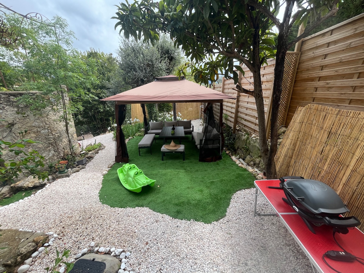 🌿 Udobnost i modernost u zelenom i mirnom okruženju, idealno za opuštanje i bijeg od svega. ✨ Uredna dekoracija će vam pružiti prijatan i elegantan boravak. Uživaćete na osunčanoj namještenoj terasi, savršenoj za uživanje u jelima bezbrižno. 🕊️ Osvježavajuće i mirno mjesto samo 15 minuta od aerodroma u Nici i događaja i mjesta koja treba posjetiti (St Paul de Vence, Cannes Monaco, Eze, Menton ...) Đakuzi je otvoren od aprila do decembra