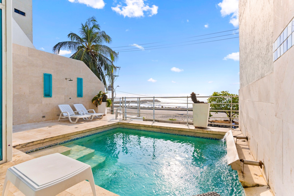 Dobro došli u Casa O La Playa, jedinstveni skulpturalni penthaus sa pogledom na okean koji oduzima dah, koji se nalazi u najekskluzivnijem dijelu Kartahene. Ovaj prostrani kondominijum nudi besprekornu mješavinu boravka u zatvorenom i na otvorenom, sa prostranim terasama, prozračnim otvorenim prostorima i pažljivo uređenim enterijerom koji spaja savremeni dizajn sa prirodnim materijalima i upečatljivim oblicima. Uživajte u direktnom pristupu plaži, savršenom za jutarnje šetnje ili pogled na zalazak sunca.