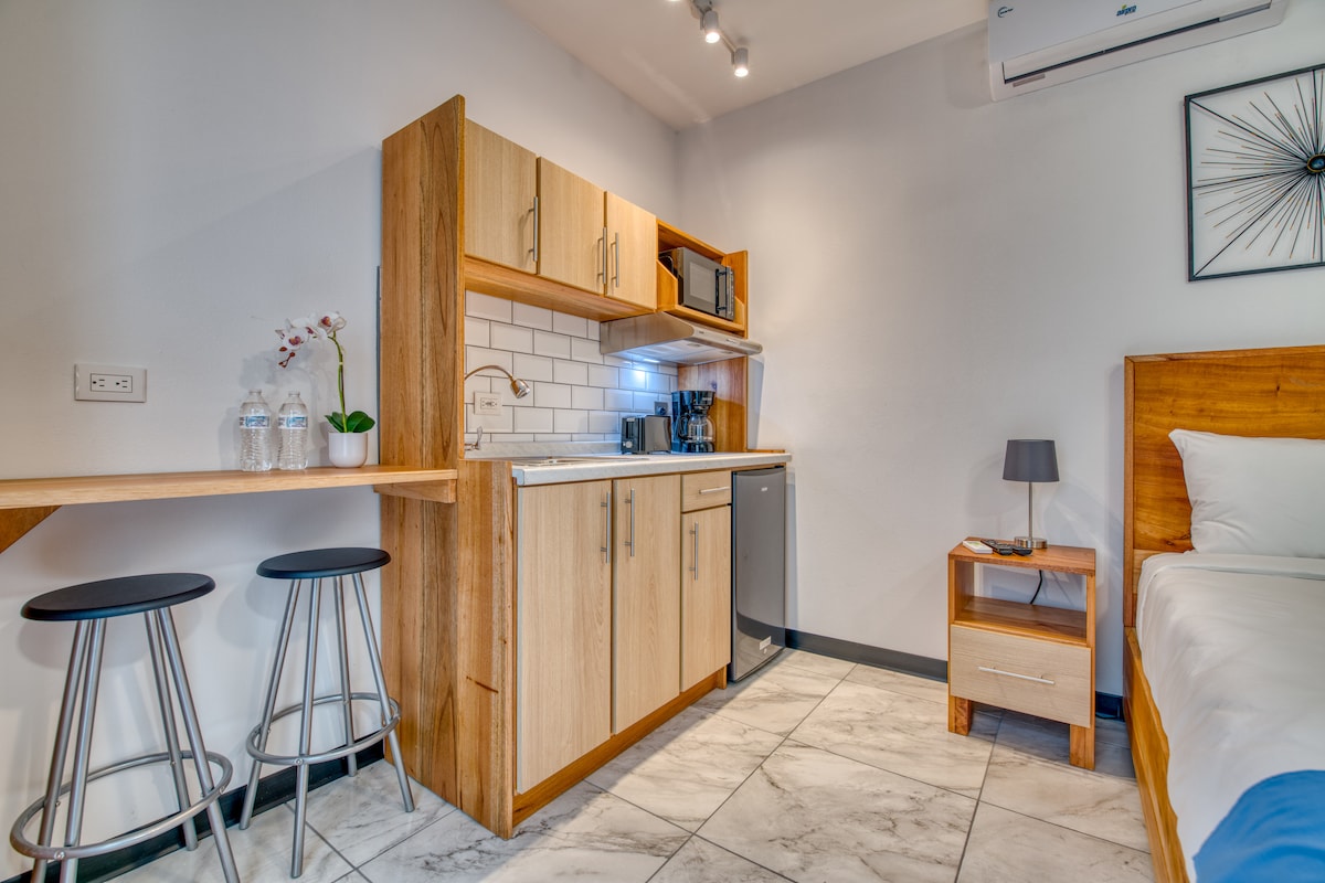 Nalazi se u centru San Hozea. Veliki bračni krevet na sprat (Queen/Twin) može udobno da primi 3 gosta, kao i privatno kupatilo sa tušem sa toplom vodom. Stan ima klima-uređaj, privatnu kuhinju sa mini frižiderom, mikrotalasnom rernom i sudoperom, LCD TV sa kablovskom i brzim WI-FI internetom. Postoji radni prostor sa radnim stolom i dvije stolice. Spoljašnje dvorište ima prirodno svjetlo i prostor za sjedenje. Stan se nalazi na drugom spratu zgrade, a recepcija ima noćnog čuvara.