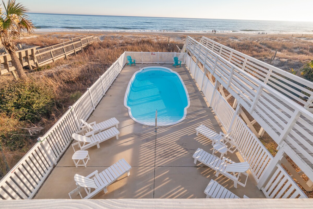 Oceanfront luxury in Dolphin Ridge! Dolphin Watch is a newly renovated 7BR, 4.5BA home that sleeps 28. Enjoy a private pool, hot tub, and outdoor shower with hot & cold water. The spacious master suite features its own hot tub and walk-in shower. With 4 king rooms, a double queen room, and two bunk rooms, there’s space for everyone. Perfect for large families, reunions, or group getaways—steps from the sand and stunning ocean views!