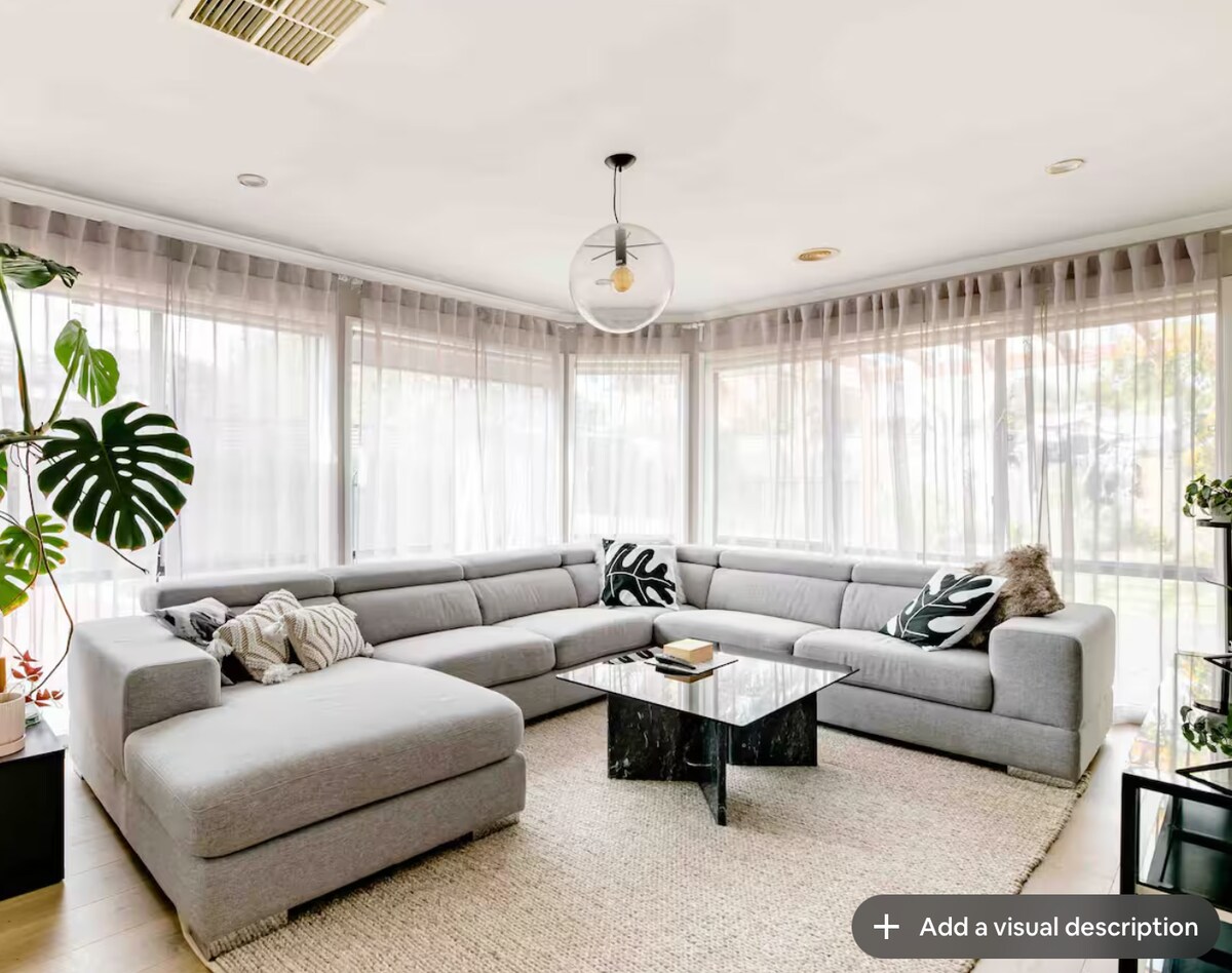 Opustite se sa cijelom porodicom u ovom mirnom smještaju. Smješten u srcu Kranborna, može da primi do 8 gostiju i idealan je za porodična okupljanja. Ovaj prelijepo dizajnirani smještaj nudi savršen spoj udobnosti, stila i mira. .Dom je kratka vožnja od raznovrsnih sadržaja , istražite lokalne prodavnice, kafiće, restorane i parkove na dohvat ruke. Smješten u okviru raznovrsnih plaža, Cranbourne Botanic gardens, Dandenong lanac. Udaljenost pješke od lokalnih Vullija i kafića