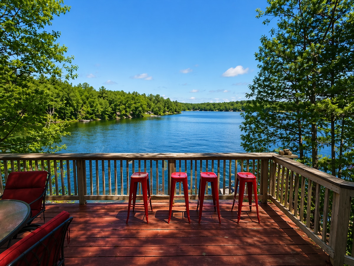 Predivan noviji izvođač radova od 5000 kvadratnih metara koji je izgradio kuću na jezeru. Sadrži velike otvorene dnevne boravke i sobe sa mnogo prostora. Uživajte u prelepom pogledu na jezero kroz masivni stakleni zid. Jedini zvukovi koje ćete čuti su vetar, talasi i divlje životinje sa loonima koji vam pevaju da spavate noću. Bez obzira na to da li ste ovde zbog pecanja, vožnje čamcem ili samo zbog opuštanja, to je odlično područje. Iznajmite ponton i istražite jezero.