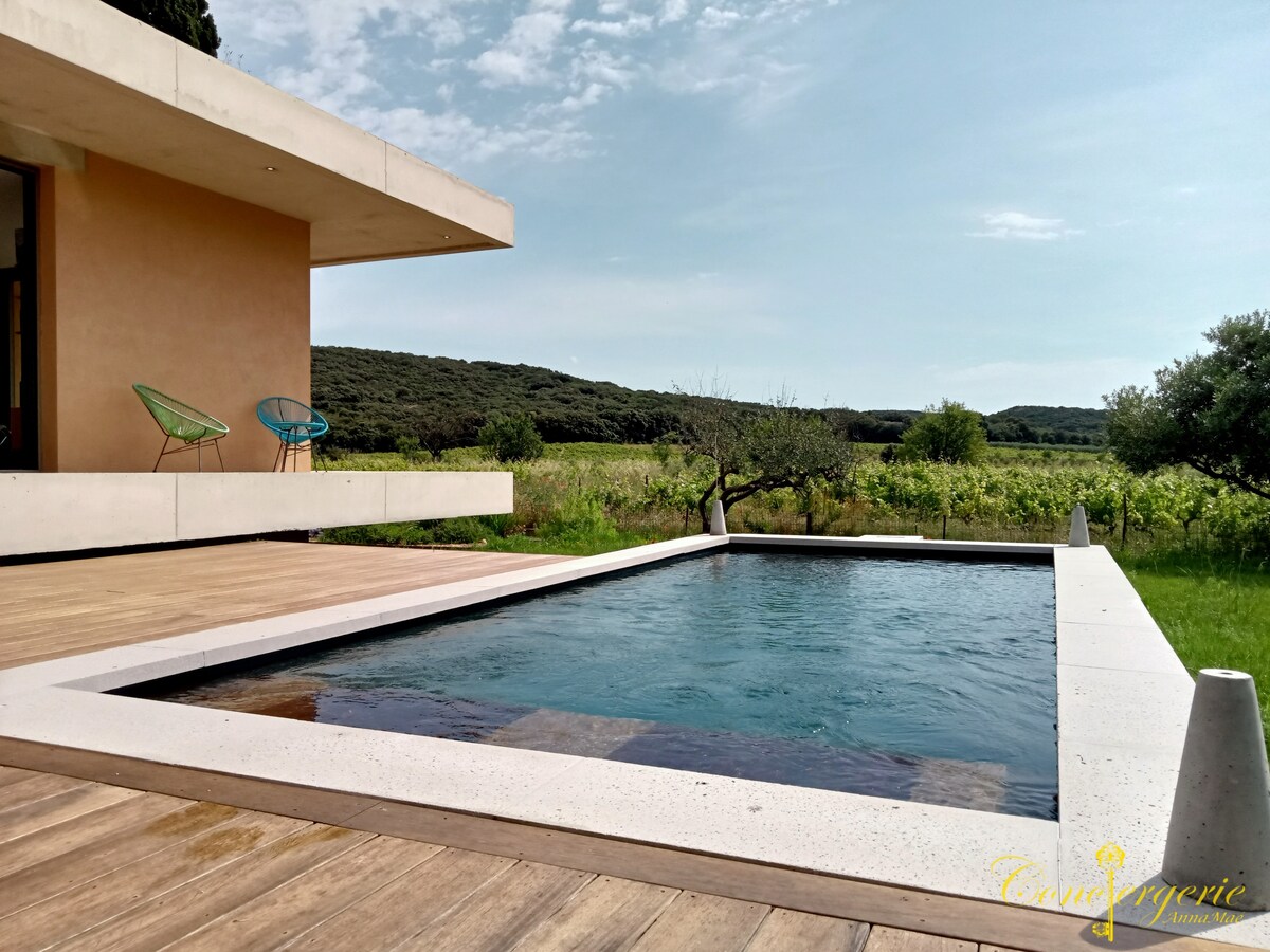Venez séjourner dans notre somptueuse villa moderne niché au cœur des vignes, offrant une vue imprenable sur la nature environnante. Dotée d’une piscine privée, cette résidence de 3 chambres vous promet un séjour inoubliable dans un cadre idyllique. Chaque chambre est soigneusement aménagée et équipé pour votre confort, la climatisation gainable vous assure des nuits paisibles même lors des journées les plus chaudes. Détendez vous dans ce logement calme et élégant.
