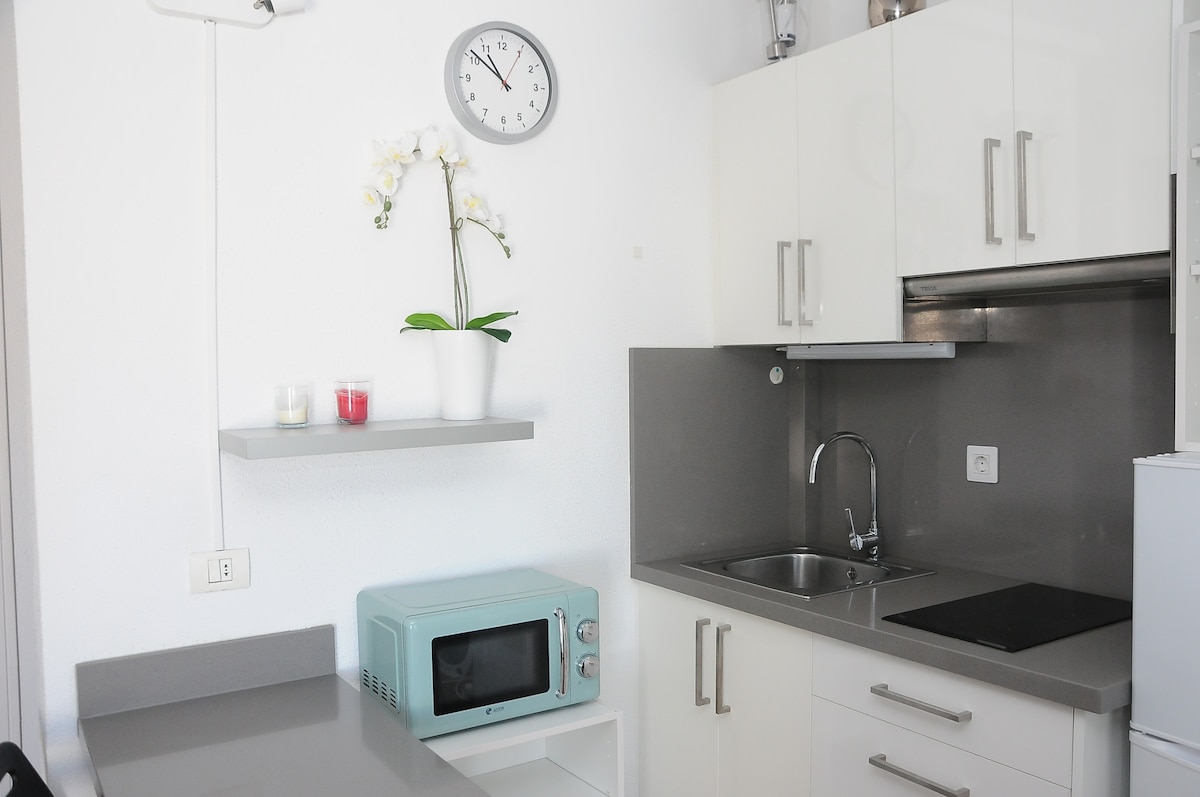 Novi studio apartman u najboljem području od Los Kristijanosa, 12 minuta hoda do plaže. Pogodno za dve osobe i pogodno za dete. Na najvišem četvrtom spratu lijepe zgrade sa „liftom”. Dobro je opremljen i ima lepu terasu sa lepim pogledom. Smart TV i najbrži Wiffi