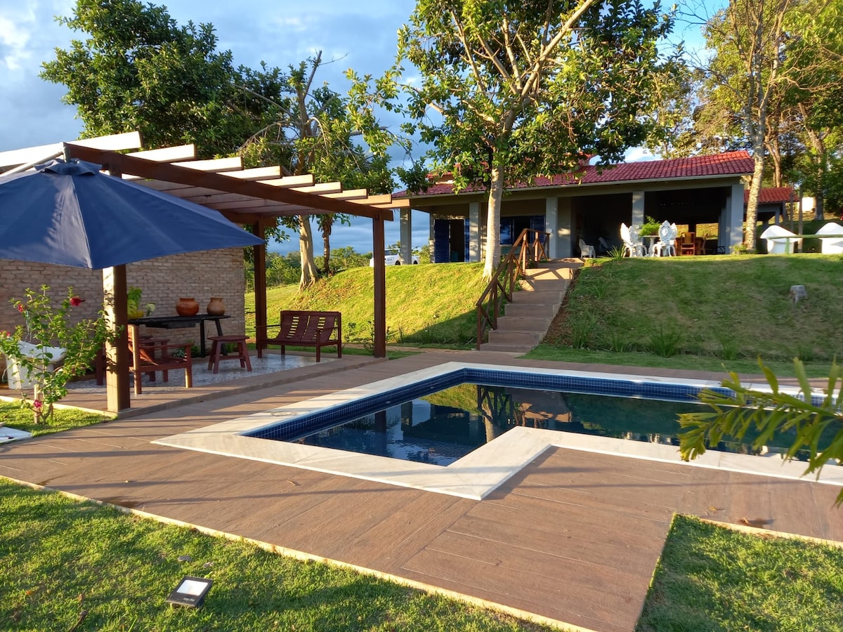 (TAČNA LOKACIJA NIJE DOSTUPNA U APLIKACIJI). Chácara je odlična za odmor i male zabave. Lokalno sa Wi-Fi mrežom, bazenom, roštiljem i fudbalskim terenom. OKOLINA KOJA SE NADZIRE KAMERAMA. Pamćenje lokacije aplikacije nije tačna!
