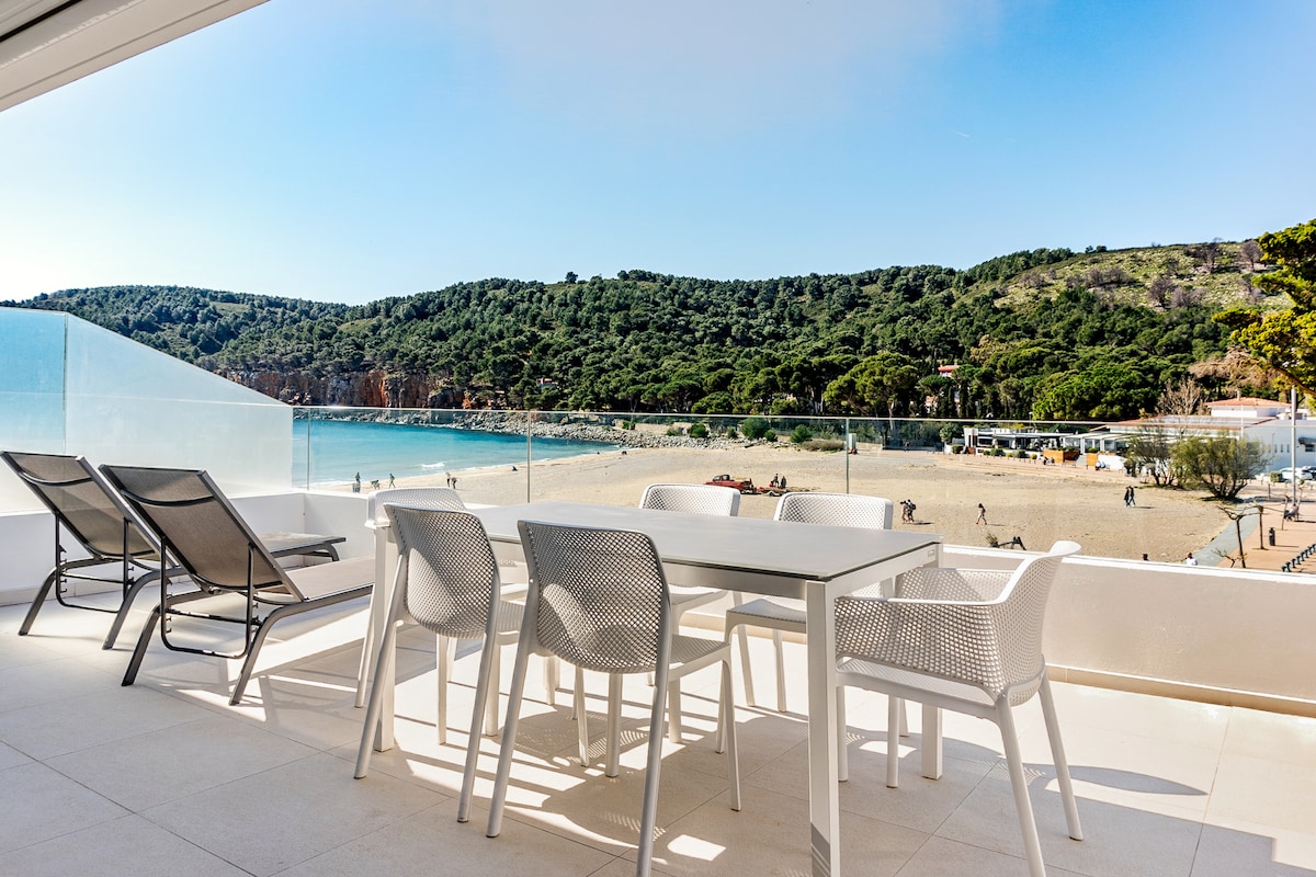 Desconecta de la rutina en este alojamiento único en primera linea de mar. Un ático duplex con dos grandes terrazas donde podrás relajarte escuchando las olas del mar y ver a los barcos navegar. Tranquilidad y naturaleza se unen en un auténtico paraíso, en una zona segura y con mucho encanto. La casa está situada en el antiguo barrio pesquero, que conserva sus pintorescas fachadas blancas. Enfrente de la casa podrás disfrutar de hermosas calas y de un magnífico paseo marítimo.
