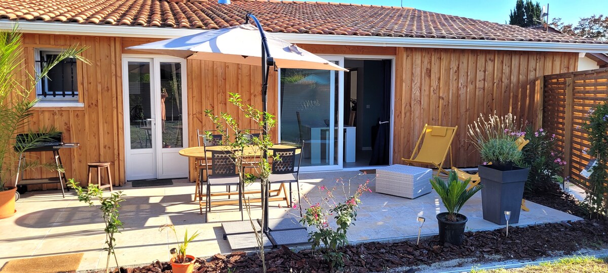 Nous vous accueillons dans ce joli logement totalement indépendant et refait à neuf, sur le même terrain que notre maison mais sans vis à vis, terrain de 640 m2 dans une impasse au calme où vous pourrez prendre votre petit déjeuner devant la piscine (non chauffée). Parfait pour tous les voyageurs en couple en voyage d’affaires ou en solo. Venez vous reposer auprès des oiseaux et de la foret dans ce logement de 35 m2 Zen, grande salle de bain. Wifi, Canal Plus et Netflix sont disponibles.