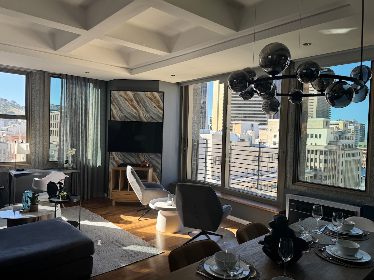 Jednosoban stan u srcu grada sa 24-satnim obezbeđenjem i parkingom. Nema NESTANKA STRUJE!!! Ima WI-FI, Netflix, dva balkona sa pogledom na Table Mountain. Postoji zajednički bazen i teretana. Na pješačkoj ste udaljenosti od svih atrakcija Gradskog centra: The Company Gardens, SA Natural History Museum, SA National Gallery, District 6 Museum, The Castle, The Slave Lodge Museum, Greenmarket Square, Long St, Hop-on-hop-off City Sightseeing Red bus & CTICC. U svakom trenutku ću vam poželjeti dobrodošlicu i pomoći.