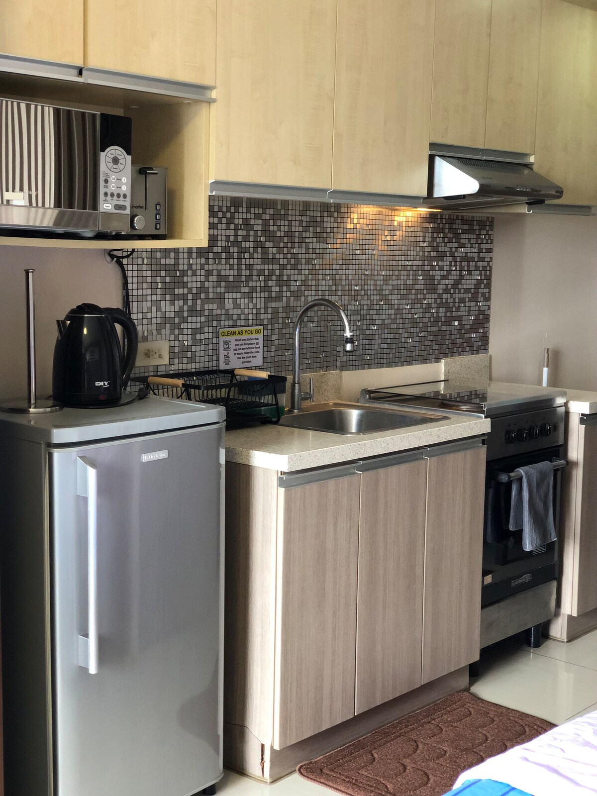 Potpuno namješten studio apartman u I.T. Park Sebu Sitiju, koji je profesionalno dizajniran za udobnost gosta. Opremljen je sa kompletnom kuhinjom sa kompletnim priborom i posuđem, električnim šporetom, klima-uređajem,bojlerom, peglom,pametnim televizorom,frižiderom, brzinom interneta do 50 mbps, mikrotalasnom šporetom na pirinač i čajnikom. Bldg. je udaljen 5 minuta hoda do centralnog bloka tržnog centra Ajala. Možete birati između širokog spektra restorana. Lako se rezerviše Grab ili taksi da biste došli do odredišta.